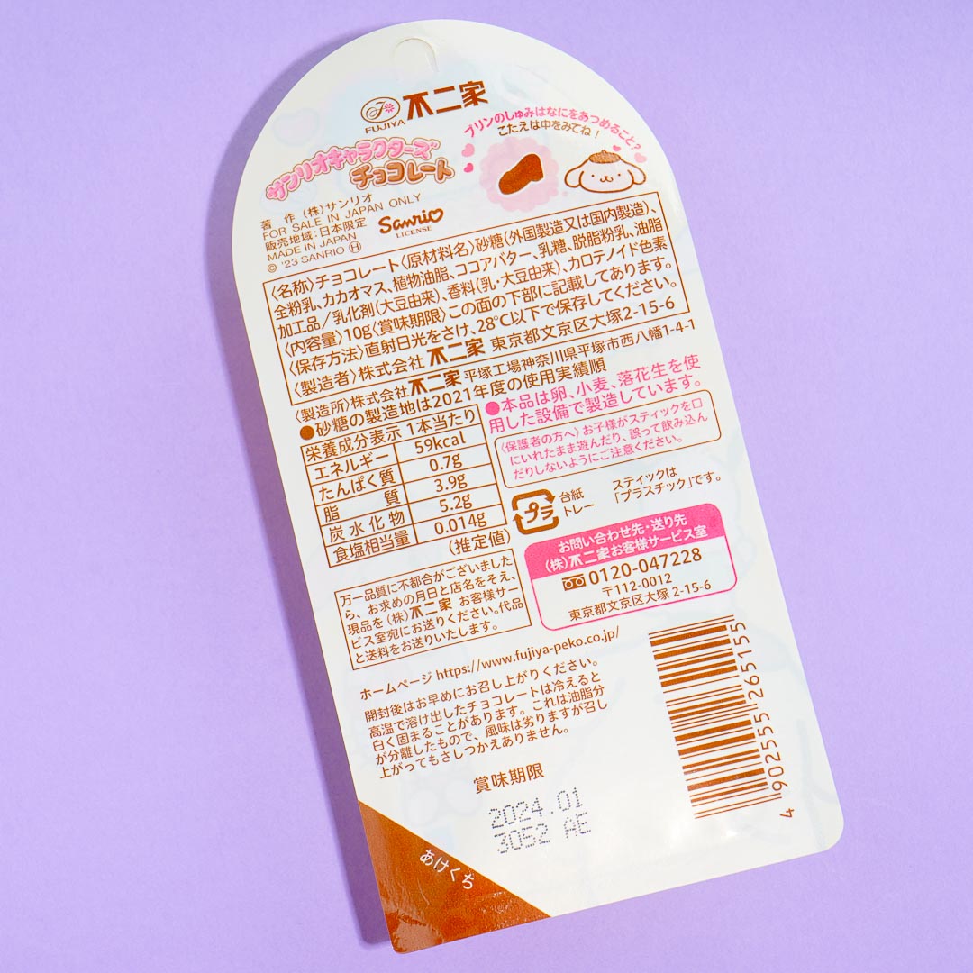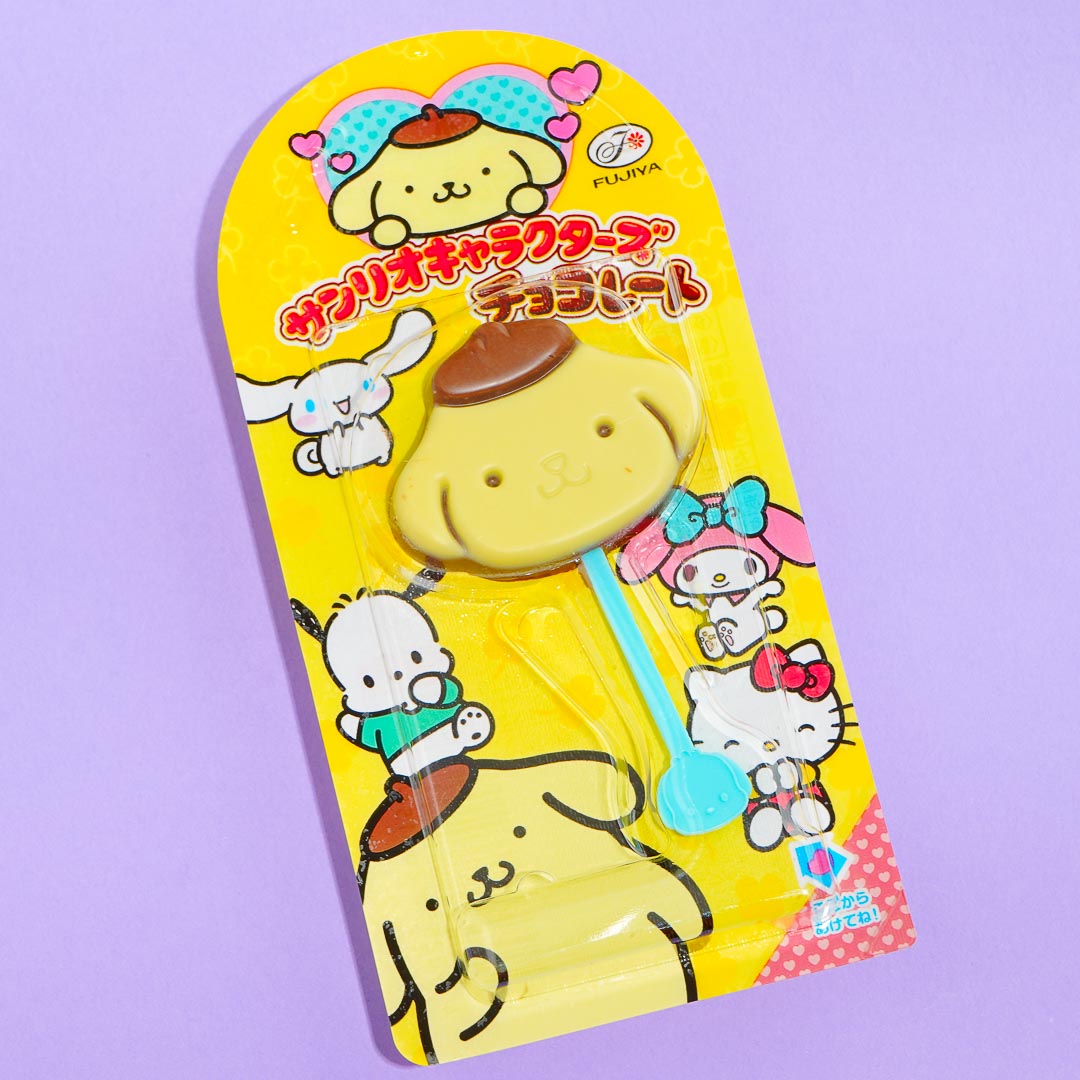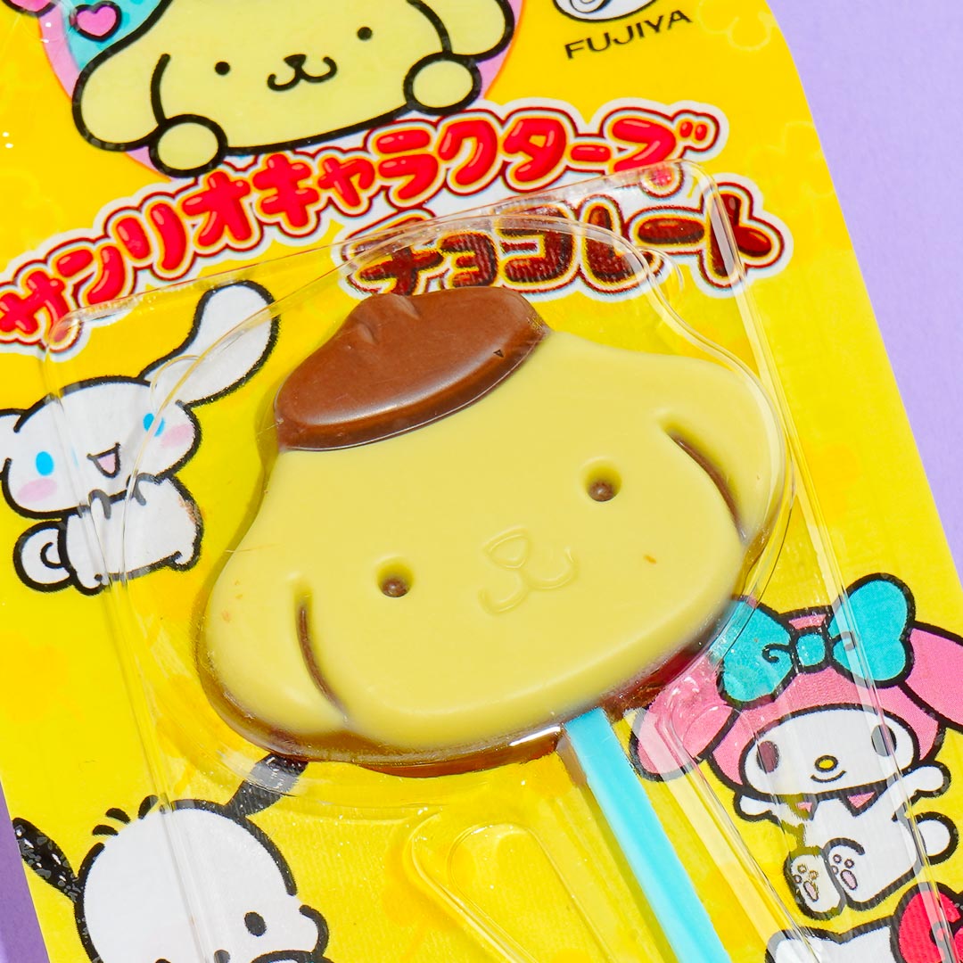 Have a bite of this sweet treat from Sanrio and Fujiya! With three layers of chocolate in the shape of Pompompurin's head, this lollipop is delicious to eat and fun to look at.