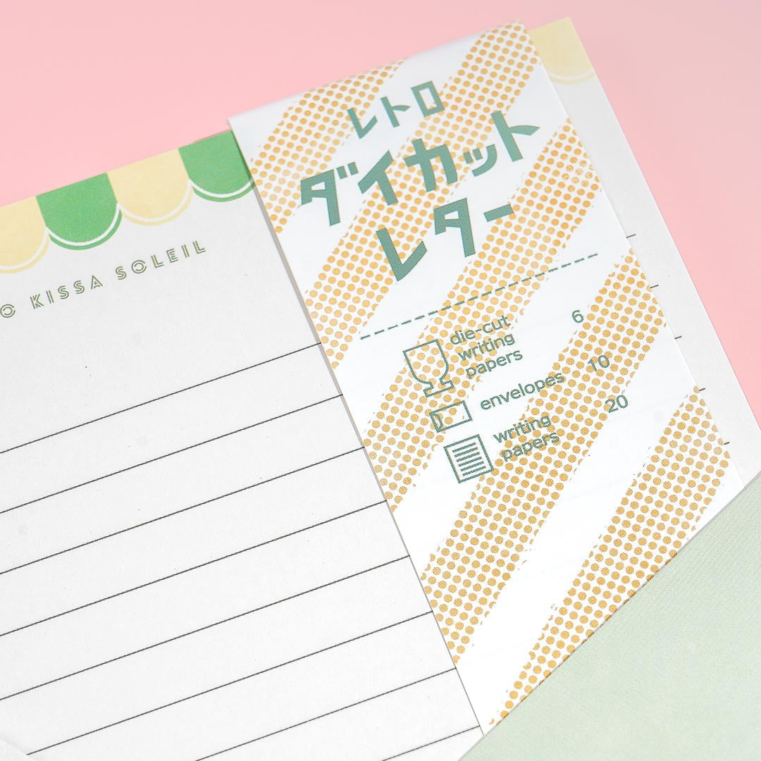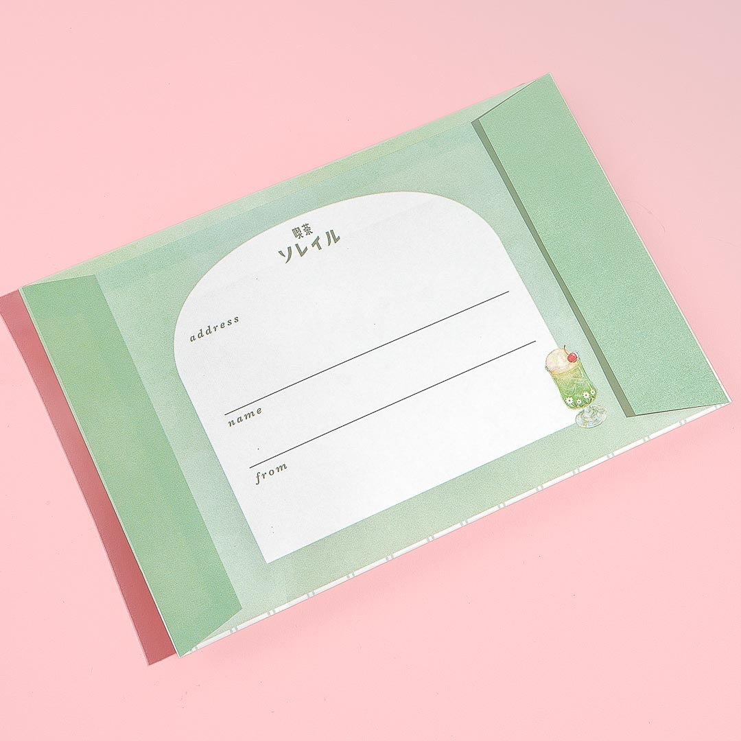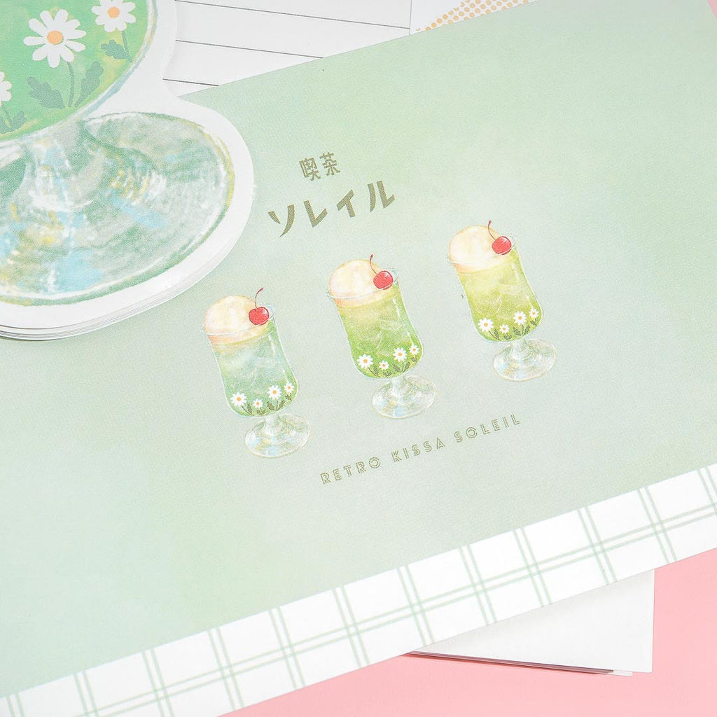 Send sweet letters to your friends using this cute letter set with a retro cafe motif! It features kawaii prints of a melon-flavored cream soda in a floral glass.