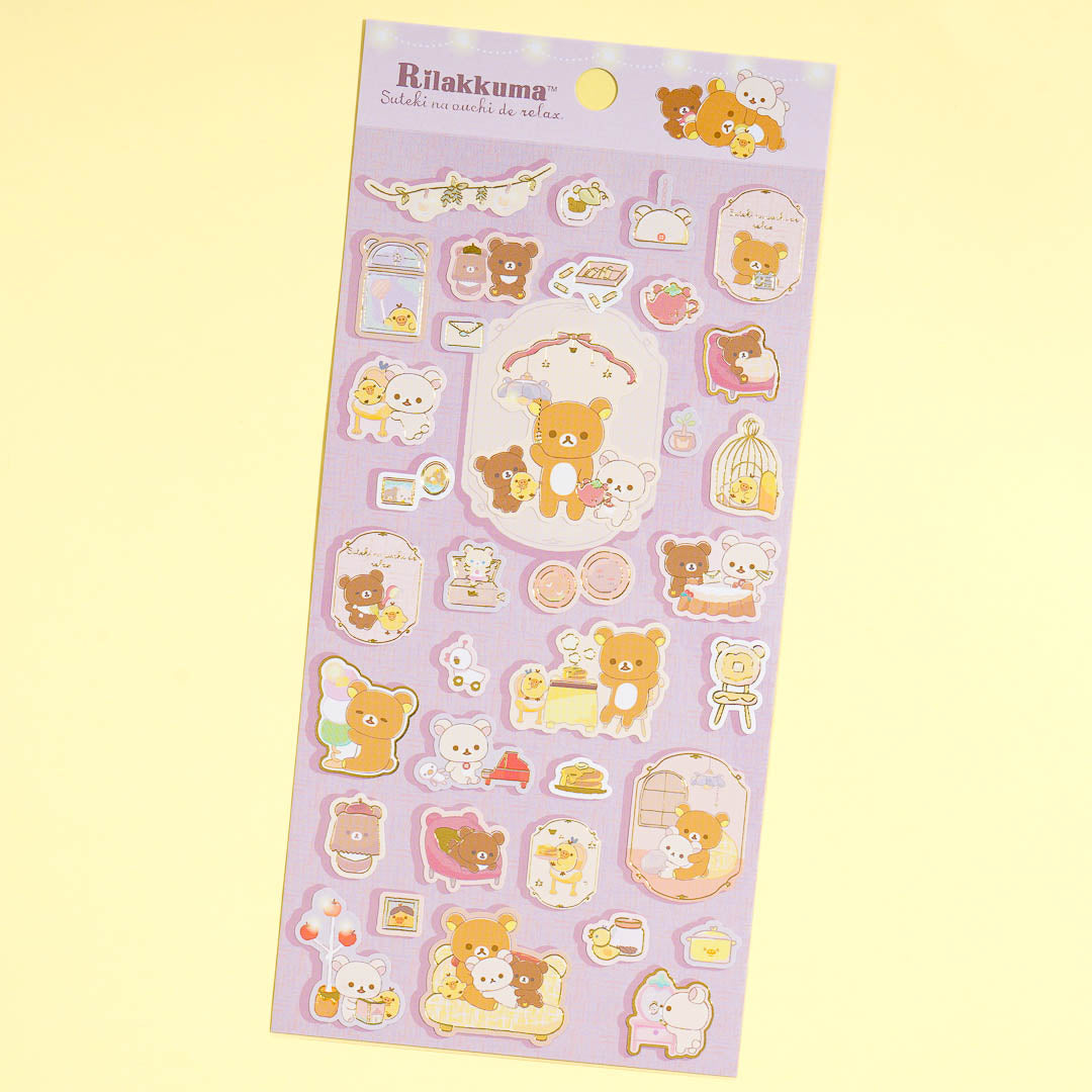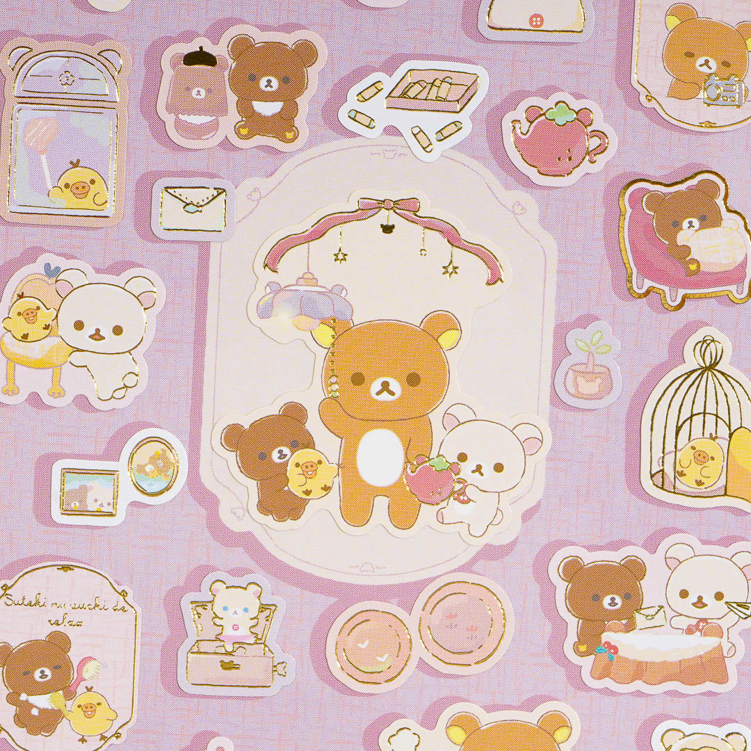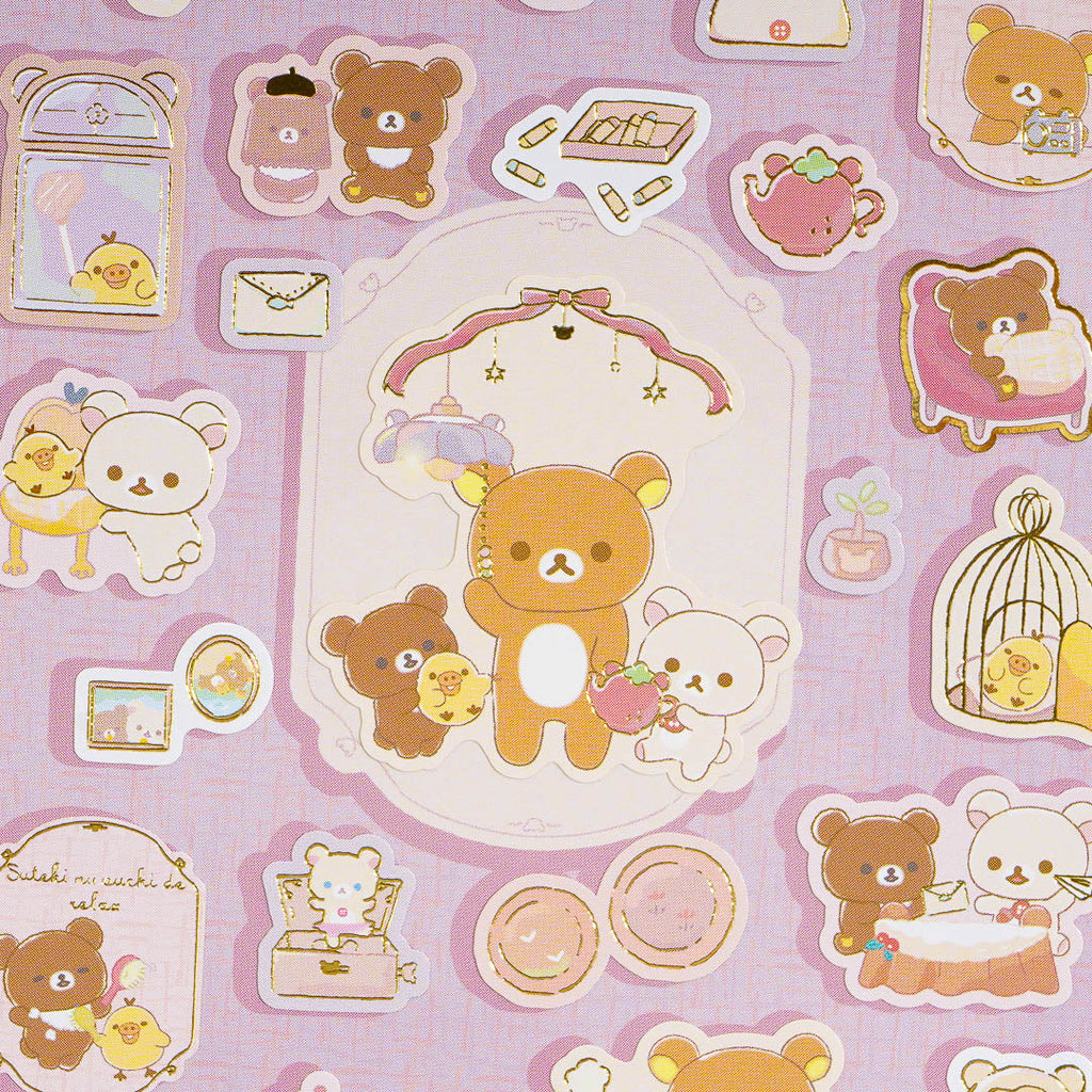 This super kawaii sheet of stickers features die-cut prints of Rilakkuma and furniture with golden foil stamping. Use it to decorate your journals and notebooks!