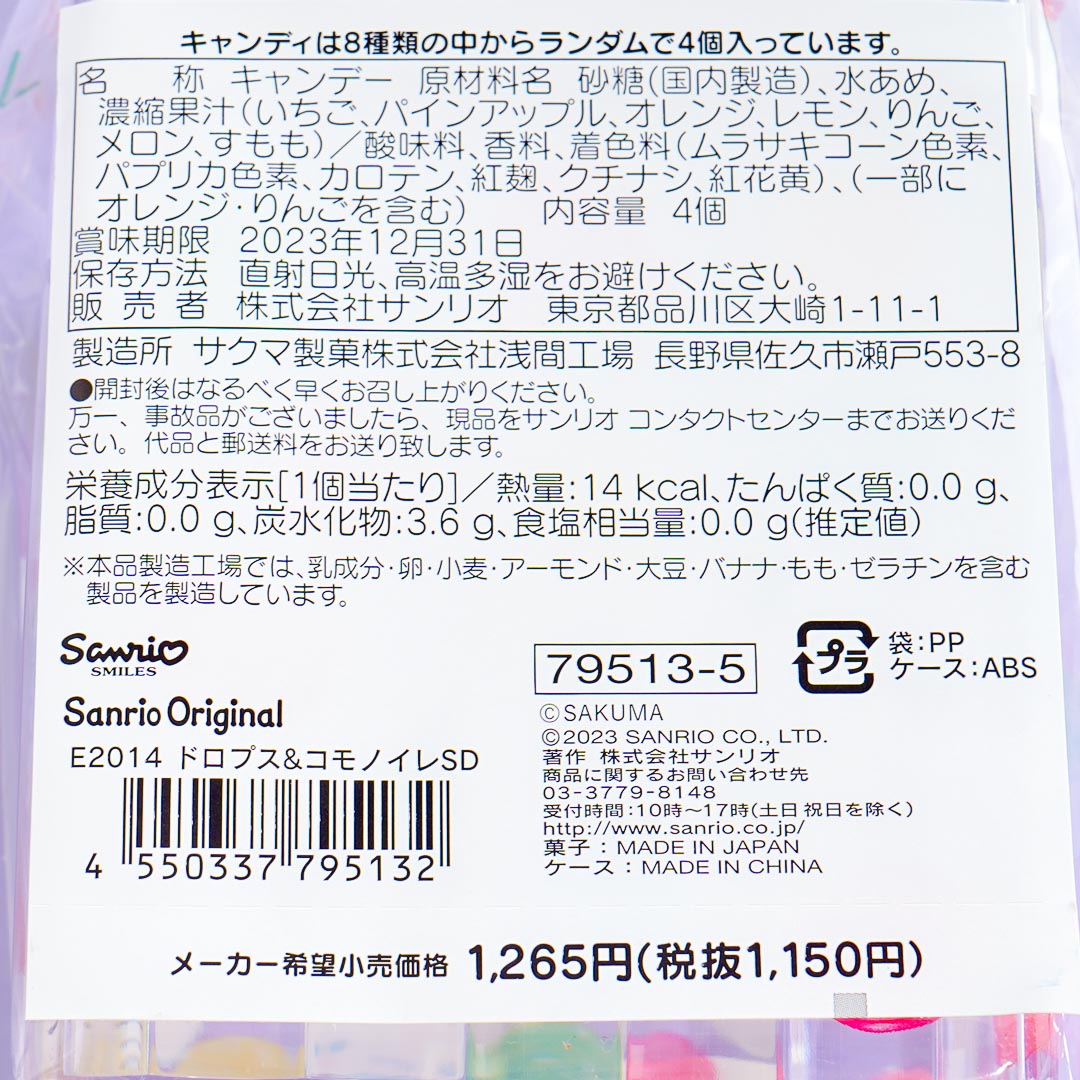 Contains 4 random pcs of candy from 8 types