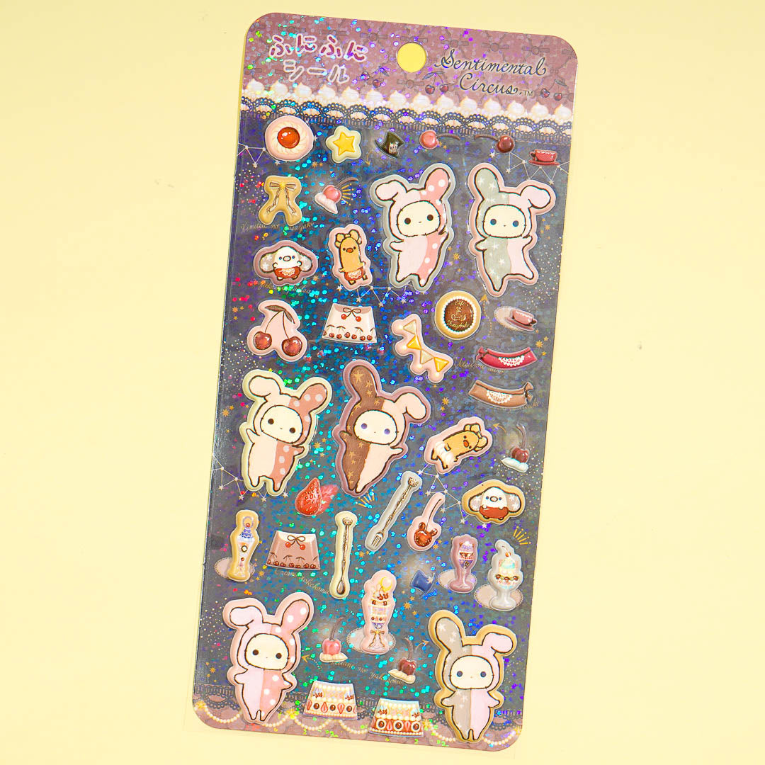 Jazz up your gadgets using these super cute puffy stickers! They feature prints of Sentimental Circus with yummy-looking desserts.