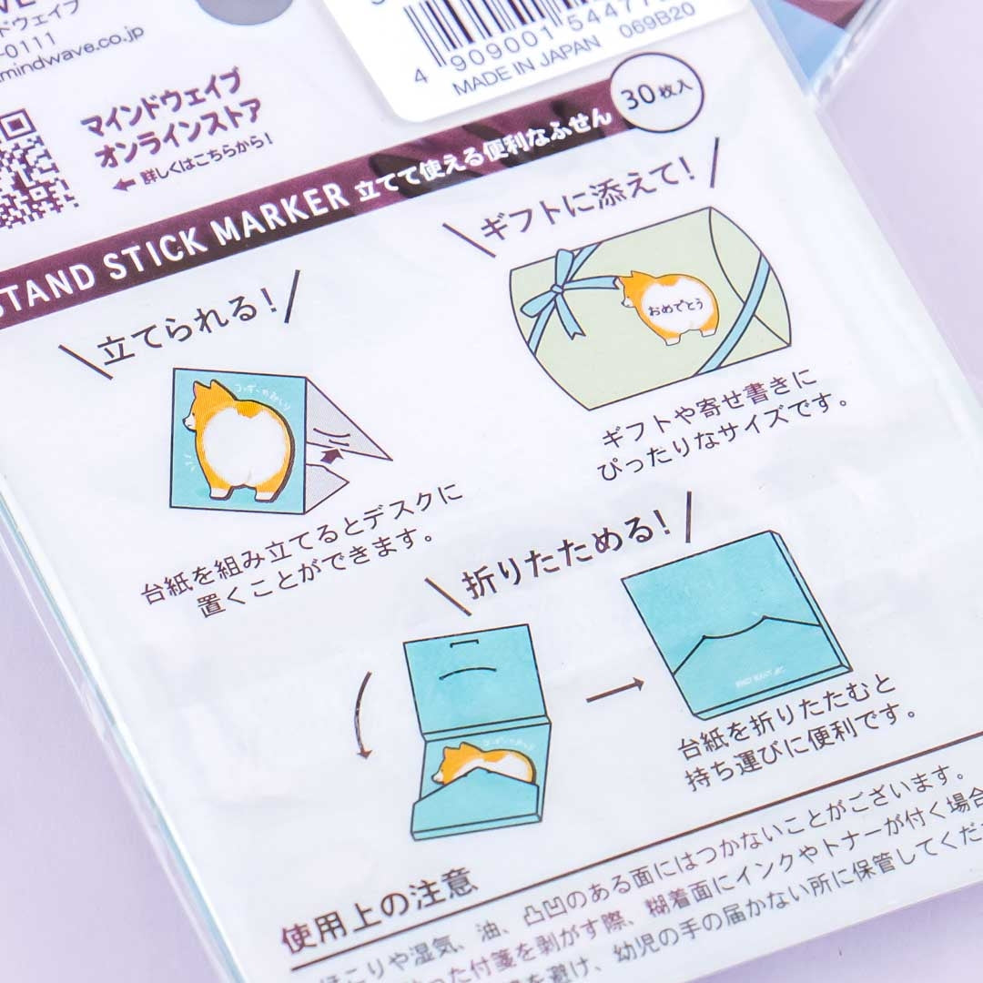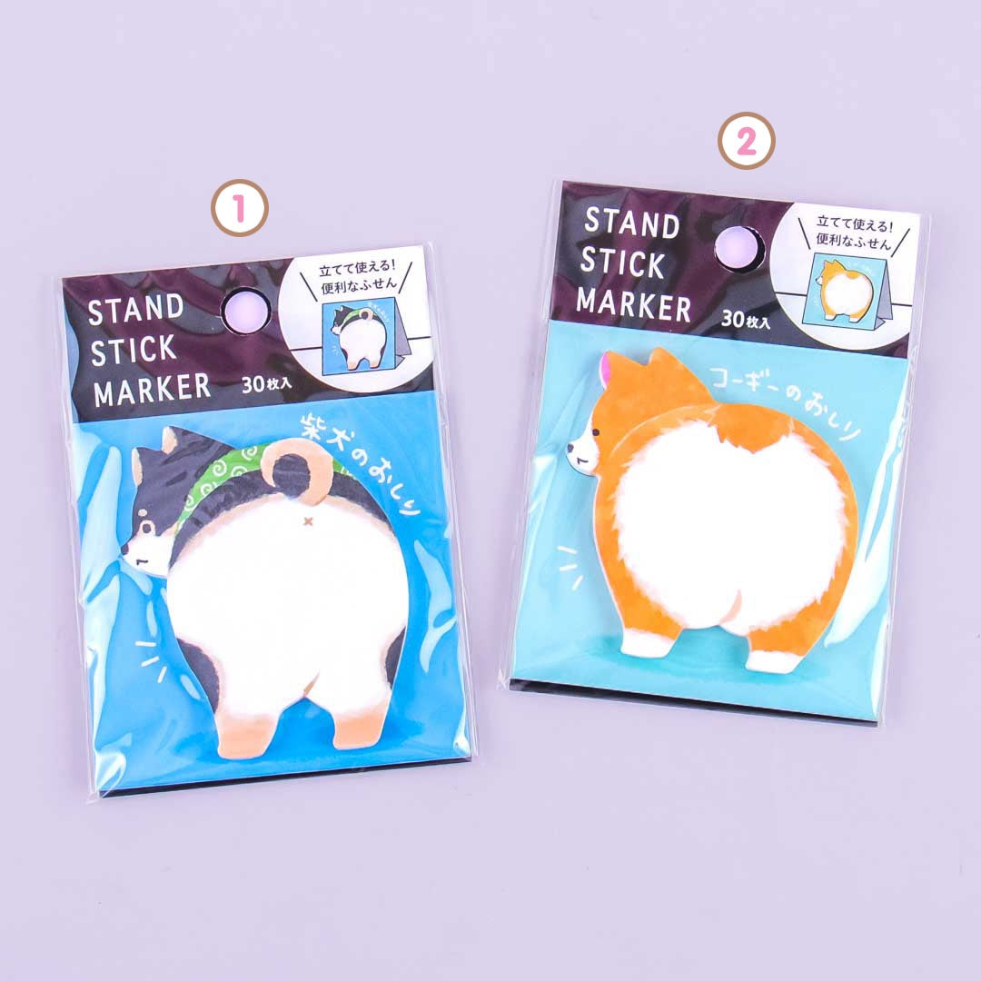 Write down important reminders on this kawaii die-cut pad of sticky notes designed to look like a Shiba Inu's big butt! You can fold up the cardboard base into a stand.