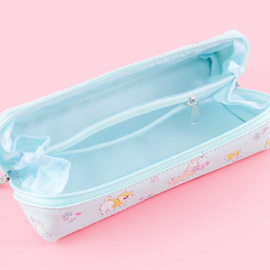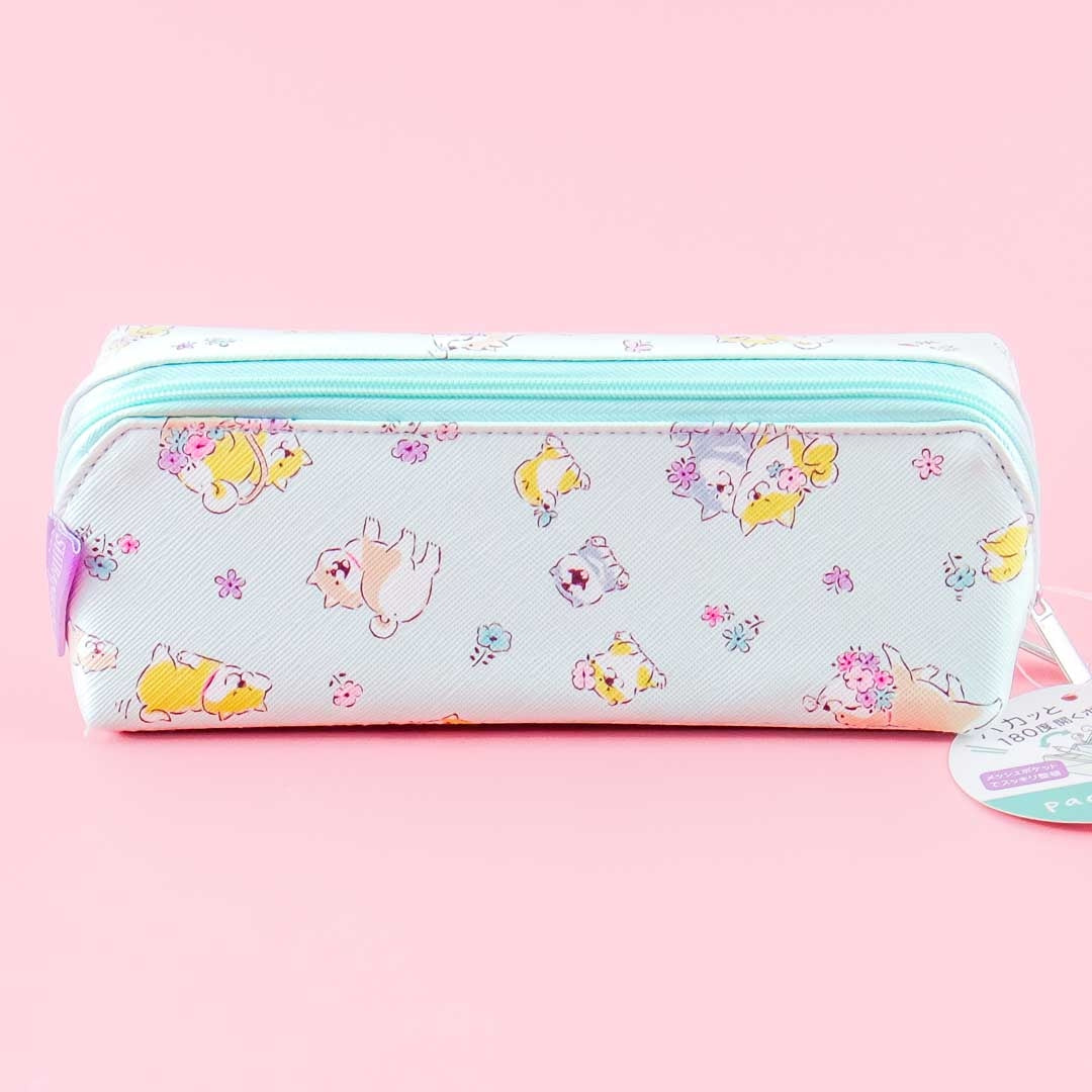 This kawaii pencil case featuring Shibanban characters and florals is roomy enough for all your pens! It has two separate compartments and a middle zippered pocket for more storage. You can open this zippered case up to an angle of 180º and use it as a cute tray for small knickknacks!