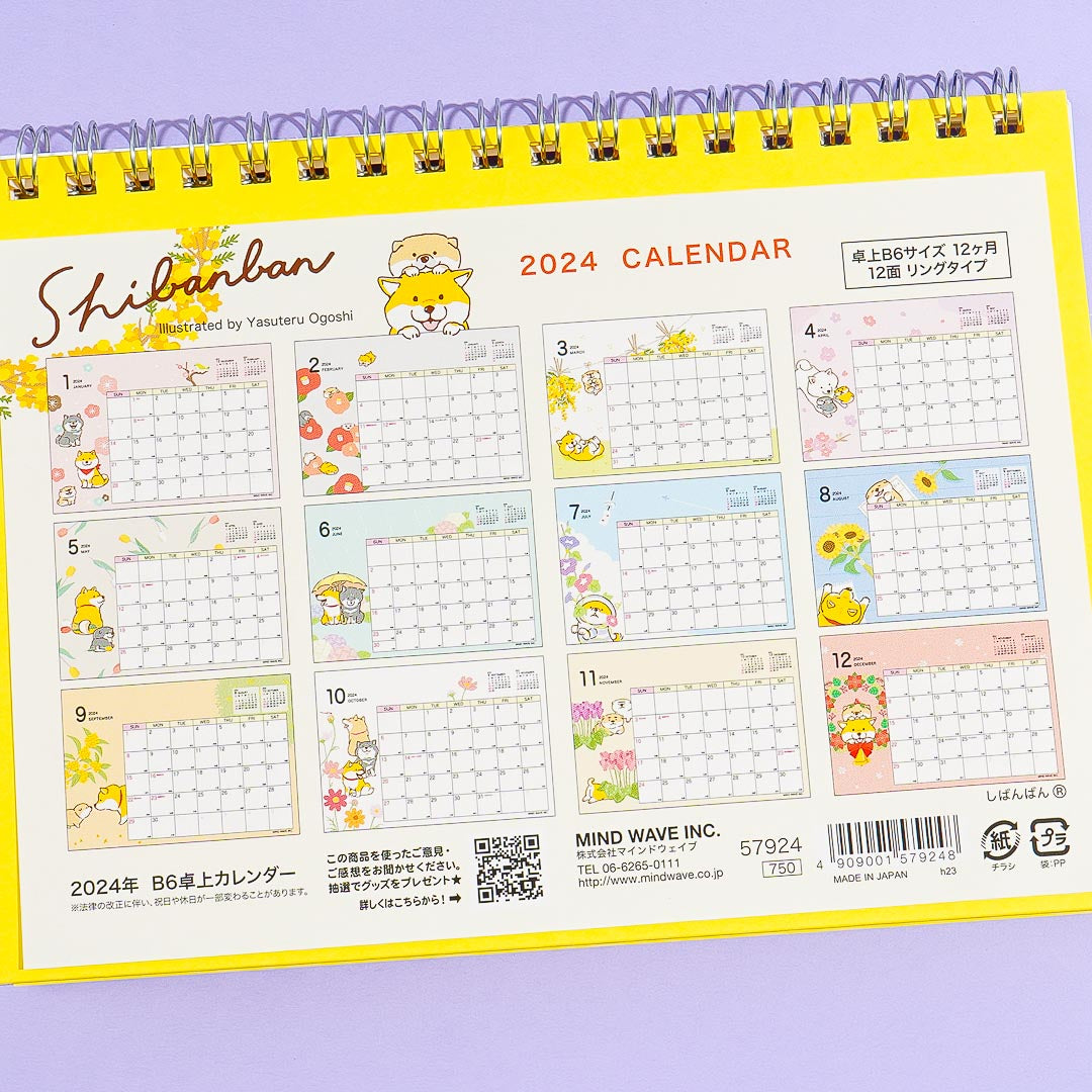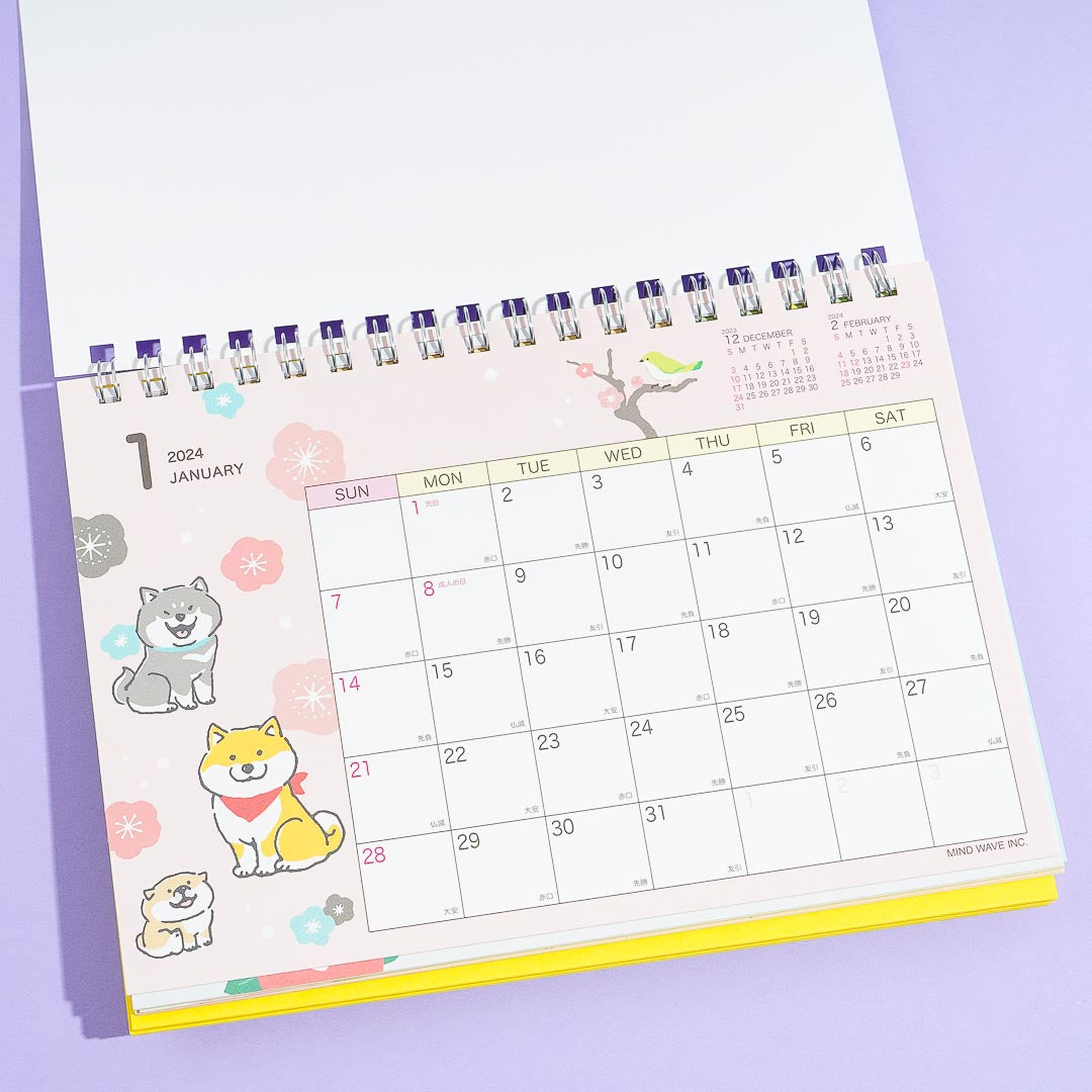 Keep track of your schedule using this super cute desk calendar! It features kawaii monthly illustrations of Shibanban and different floral patterns.