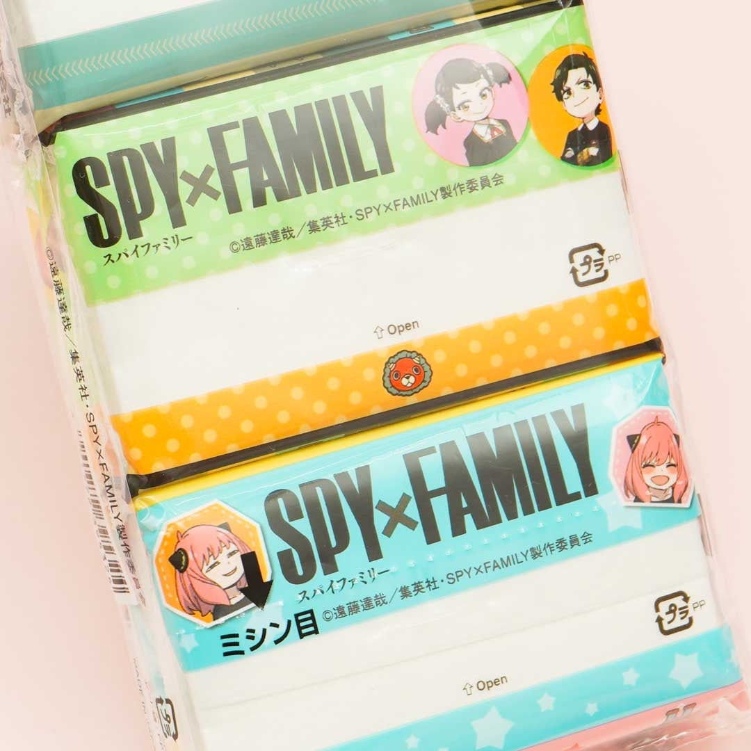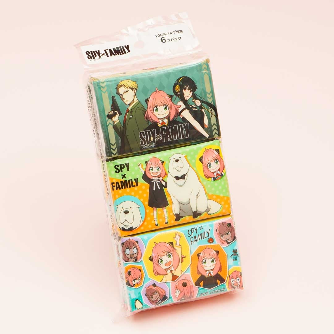 • A 6-piece pack of pocket tissues with SPY x FAMILY character illustrations on the packaging