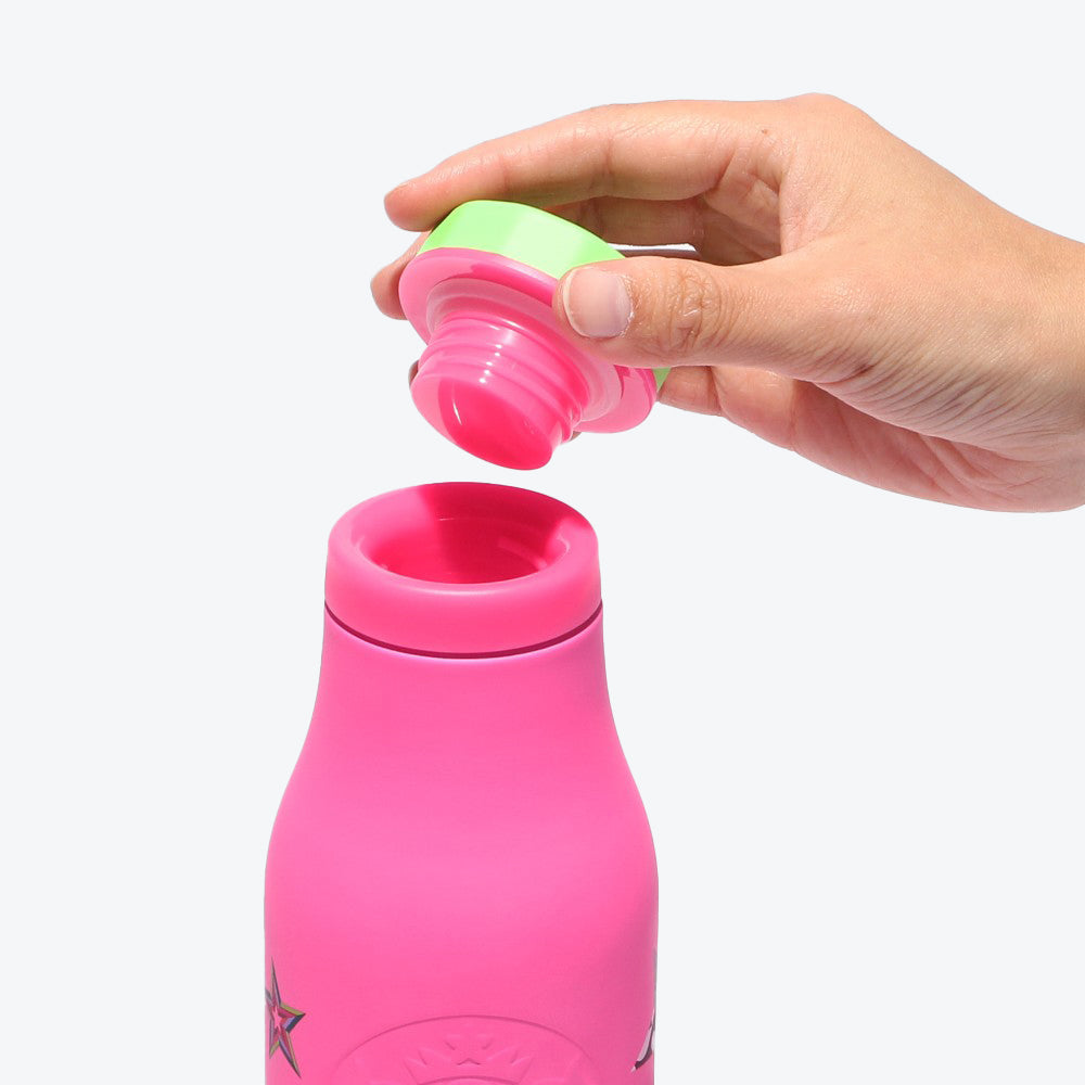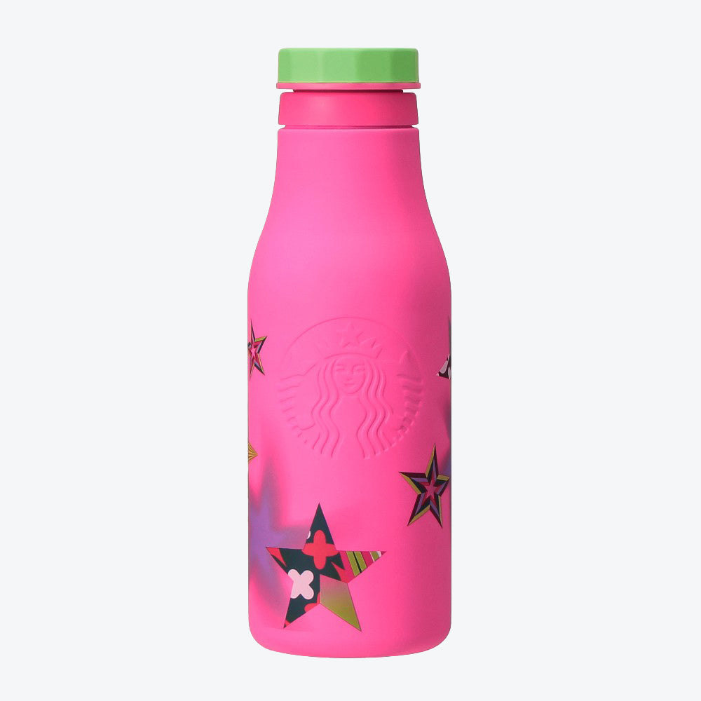 Bring along your favorite Christmas drink with this stylish pink neon-colored stainless steel bottle. Not only does it showcase an imprint of the Starbucks siren logo but it also has prints of funky stars! It's part of the Starbucks Japan Holiday series. This special bottle has a vacuum double-walled structure that makes it excellent at keeping your drink hot or cold!