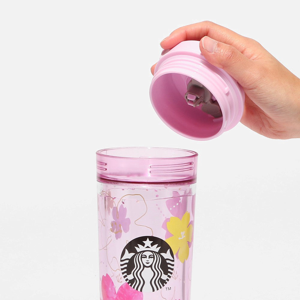 Bring along your favorite drink while walking through the park with the help of this glittery sakura-print water tumbler from Starbucks Japan! It has a double-walled design filled with water and glitter that dances when you tilt it. This tumbler is part of the Starbucks SAKURA 2024 collection.