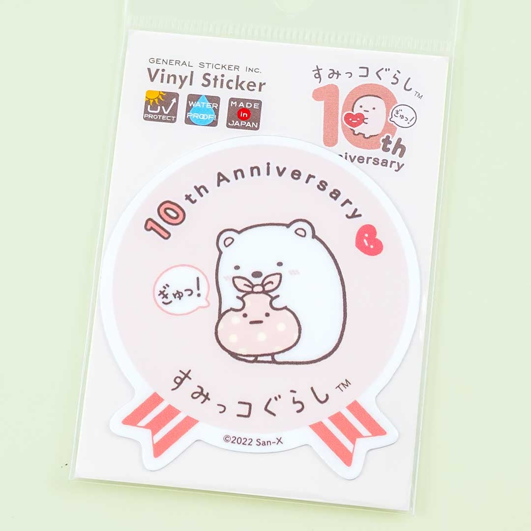 • A cute vinyl sticker celebrating the 10th Anniversary of the Sumikko Gurashi