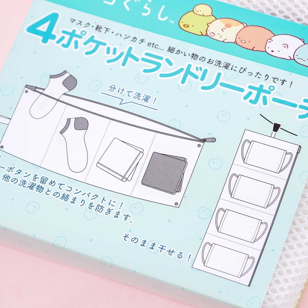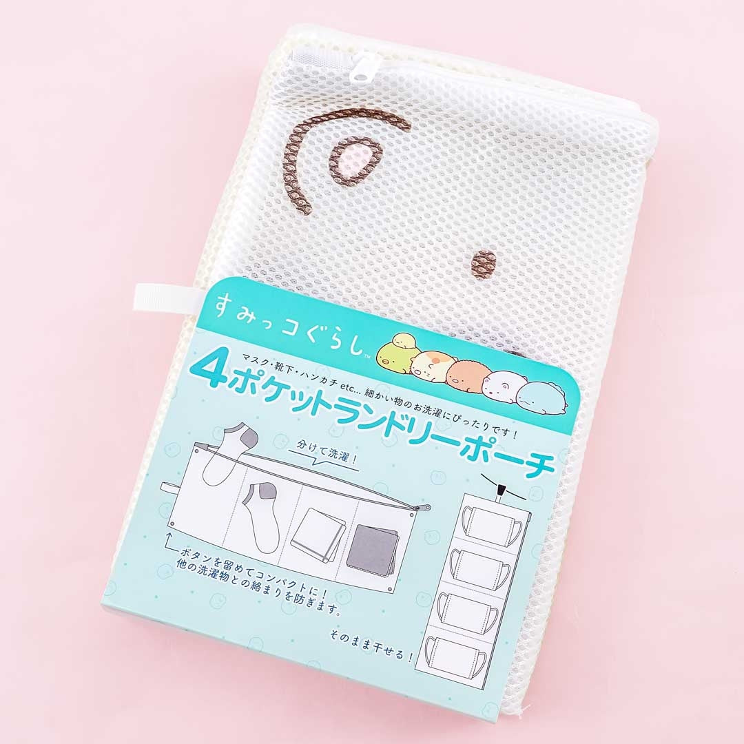 This kawaii laundry pouch features the cute faces of Sumikko Gurashi characters! There are four pockets inside so you can easily separate small items such as masks, handkerchiefs, and socks. After washing, the laundry pouch can be dried as it is.