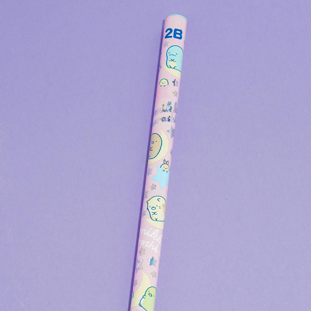 Write all your secrets in your diary with this super kawaii 2B pencil. It features illustrations of holographic crescent moons and stars with all the Sumikko Gurashi characters.