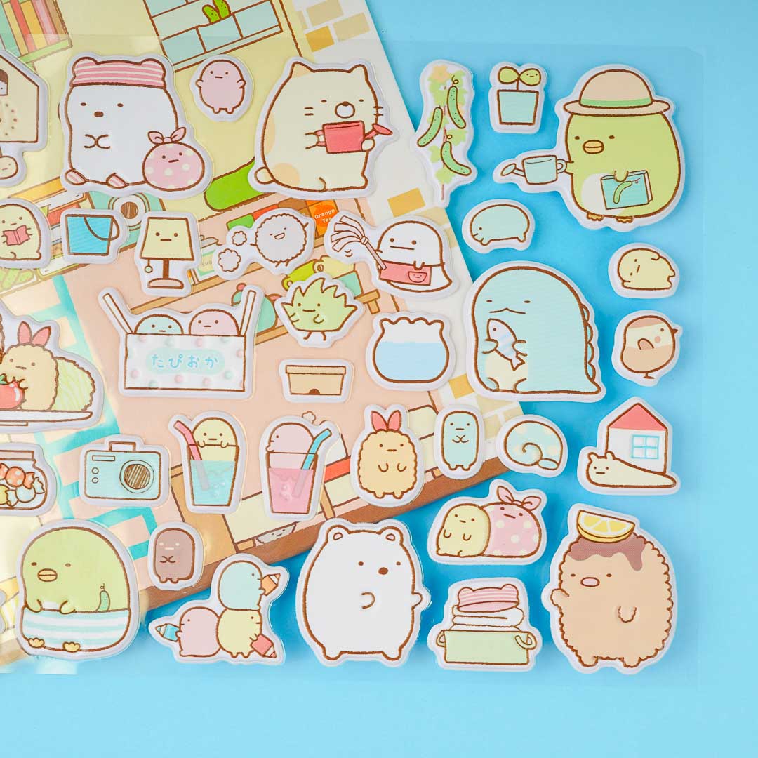 This kawaii puffy sticker set lets you play with the Sumikko Gurashi cuties while you're out on the road! It comes with a bag-shaped case that's easy to carry around and lets you reuse the stickers.