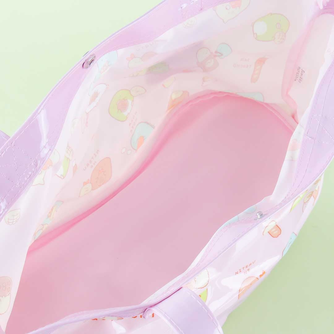 A bag with cute illustrations of Sumikko Gurashi characters and pastries