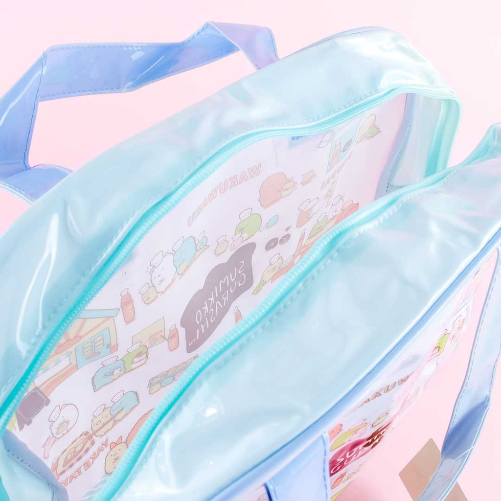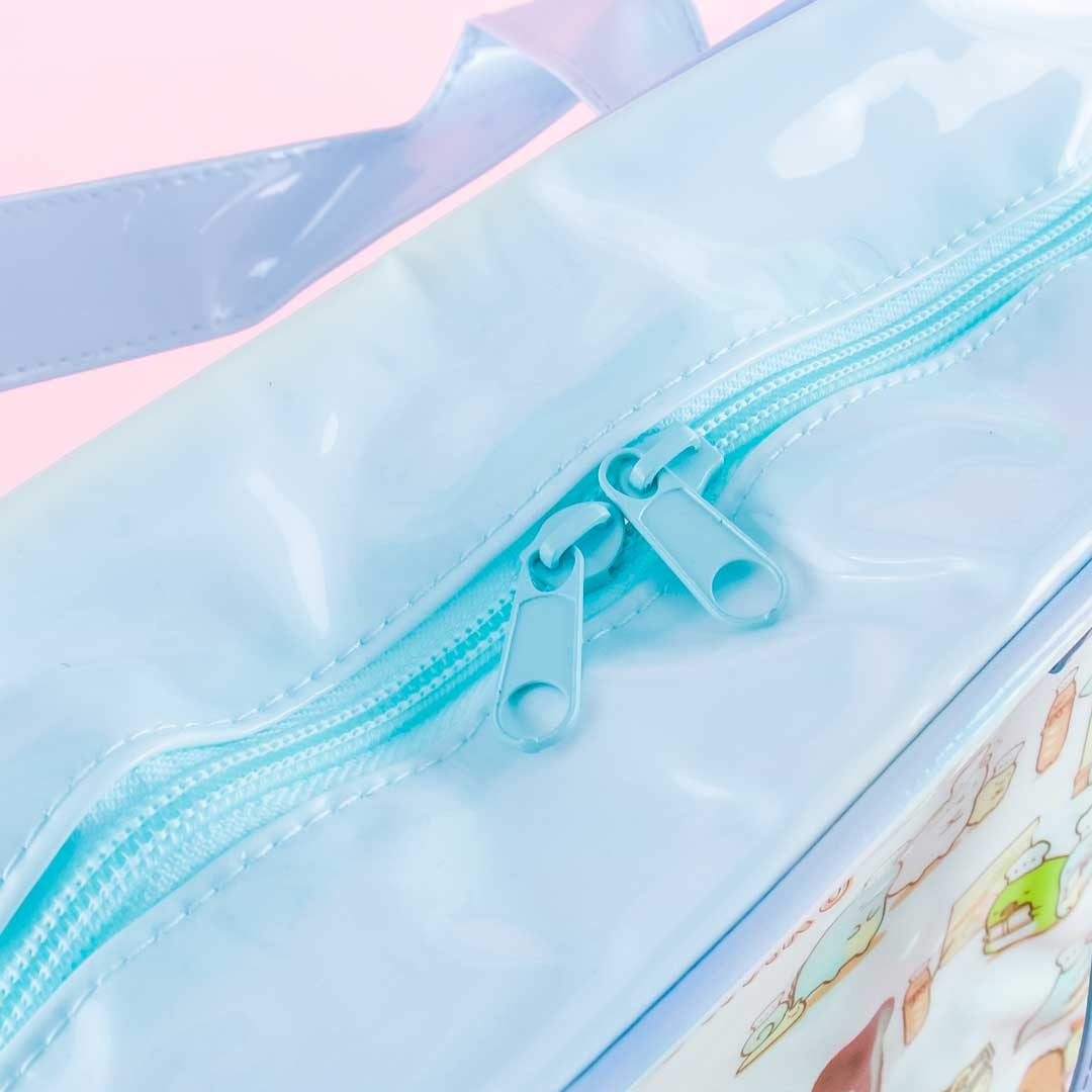 Bring all the important things for your beach trip using this super cute handbag featuring the Sumikko Gurashi gang in a baking class! This zippered hand bag is made of durable plastic material.