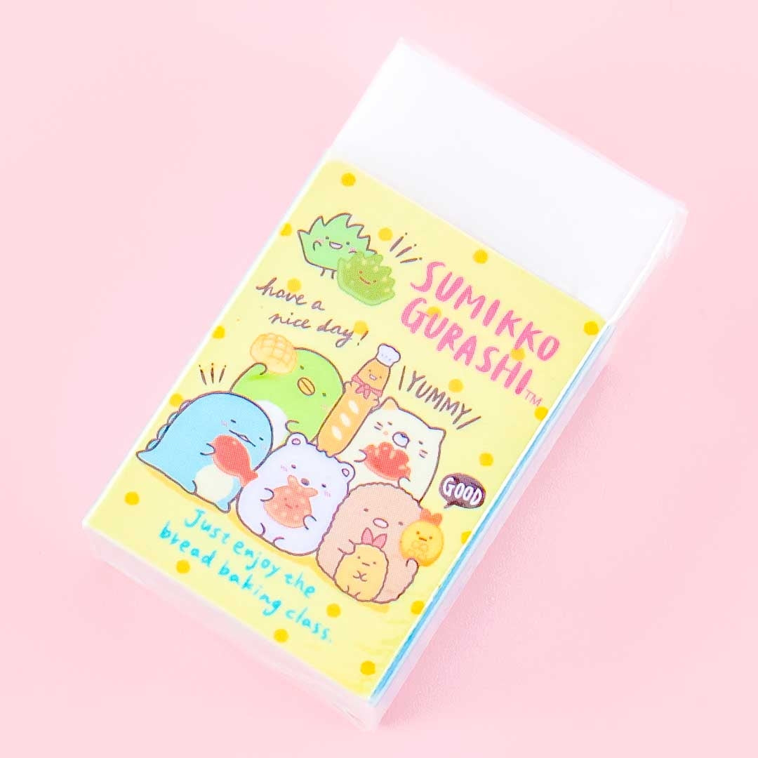 Use this super cute green apple-scented eraser to keep your notes clean and error-free! Its packaging features the Sumikko Gurashi gang baking some bread.