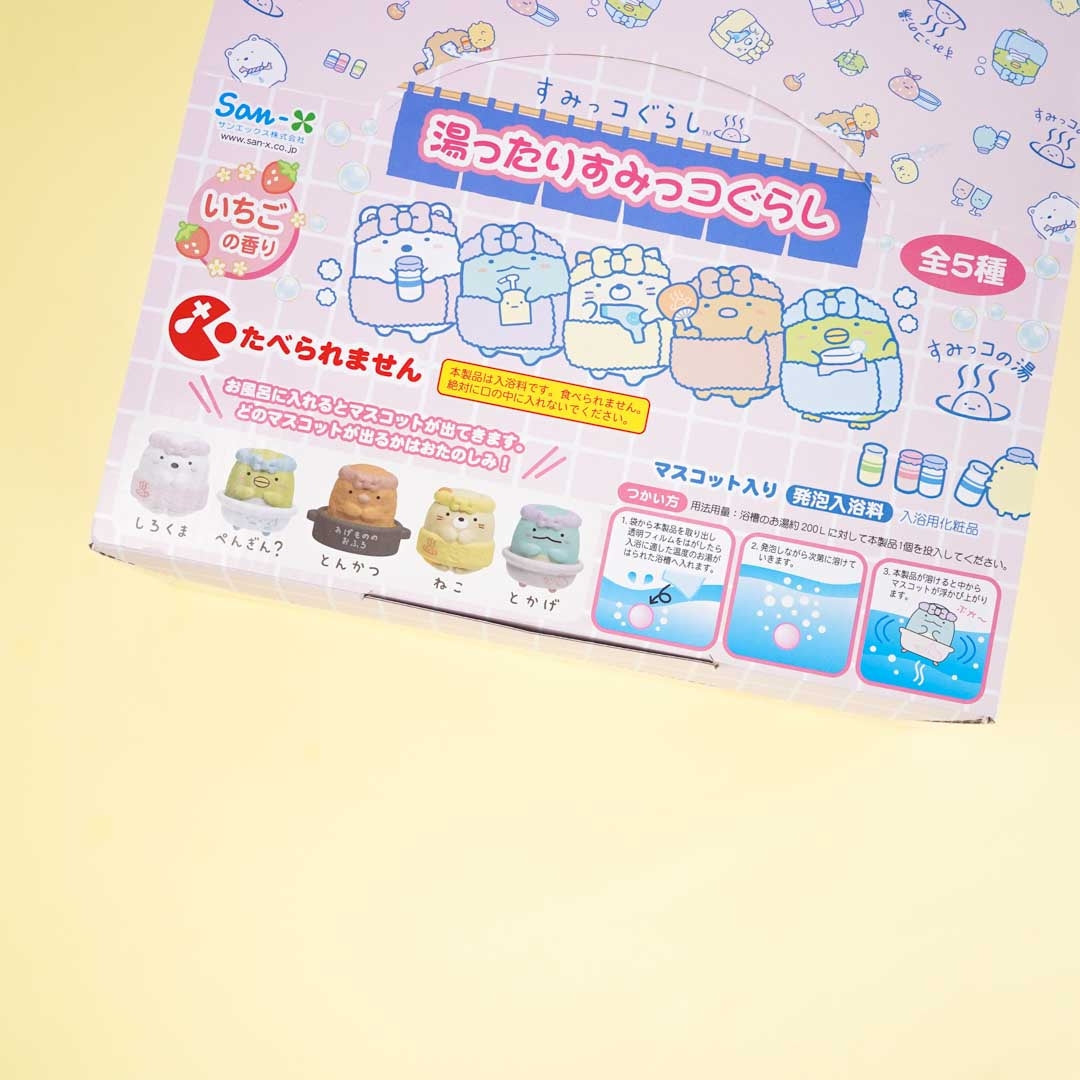 Have fun taking a bubble bath with this special bath ball with a fruity strawberry scent! Watch as this ball melts and reveals a surprise Sumikko Gurashi bathing toy inside! You’ll receive a bath ball with a random figure out of five possible designs when you order!
