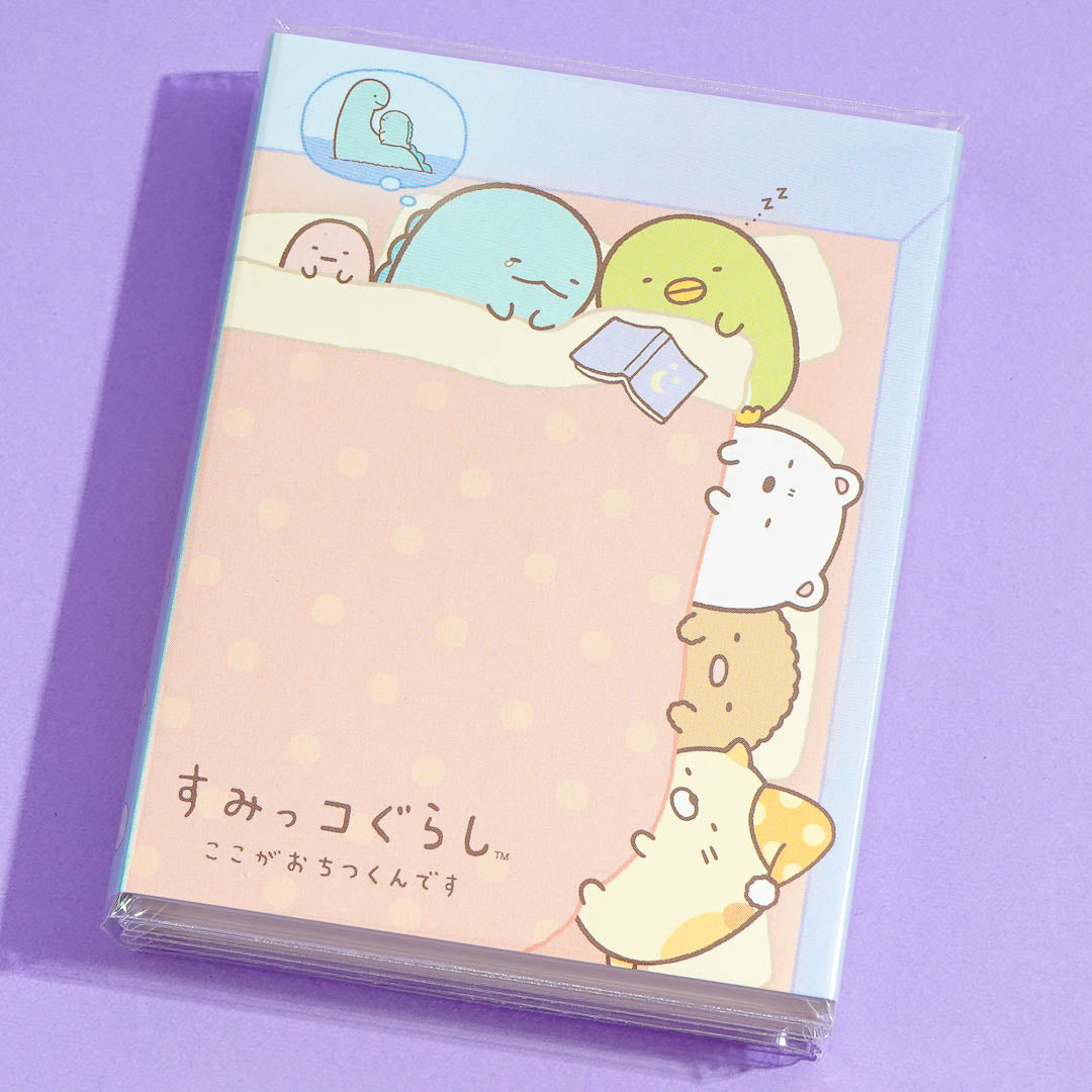 Have fun writing your short notes using this kawaii memo pad set! It comes with six pads that have different designs featuring prints of Sumikko Gurashi. This set comes in a handy foldable cardboard case with a cover showing the characters sleeping under a comfy blanket.