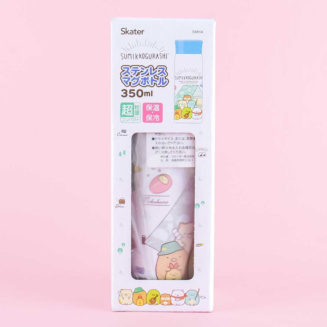 Bring along your favorite beverage using this super cute stainless steel bottle! It features prints of the Sumikko Gurashi gang out on a camping trip. This ultra-lightweight thermal bottle has a filter for ice and a screw-on lid to keep your drink from spilling. Don't wash this bottle in the dishwasher!