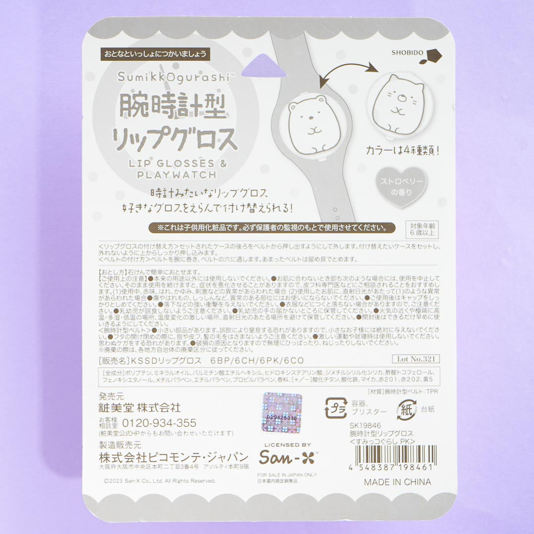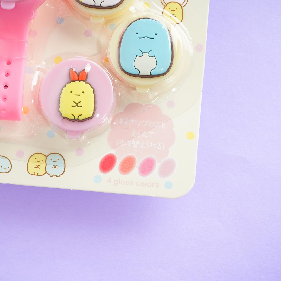 Retouch your lipgloss easily while you're on the go with this kawaii strawberry-scented lip gloss set! It looks like a watch and features illustrations of the Sumikko Gurashi cuties. The set comes with different colors so you can choose and replace the lip gloss.