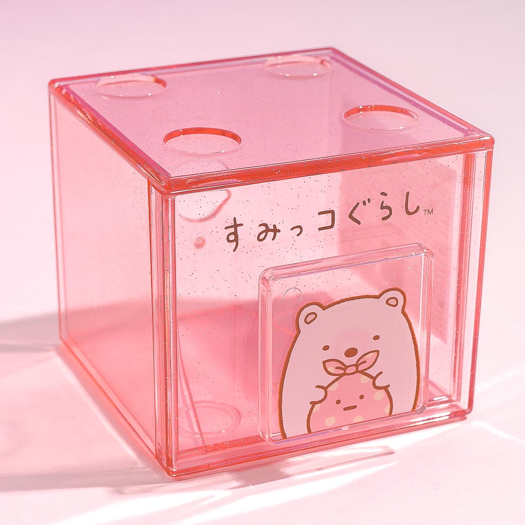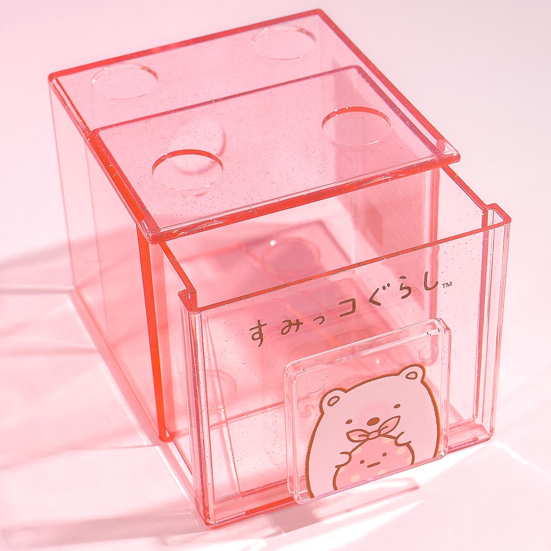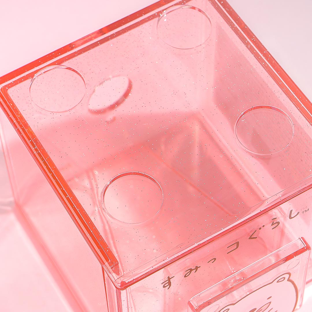 Keep your desk organized with this super cute plastic cube chest! It features a kawaii print of Shirokuma, the adorable bear from Sumikko Gurashi. This chest is made from clear plastic material and can be stacked with drawers of the same style and size.