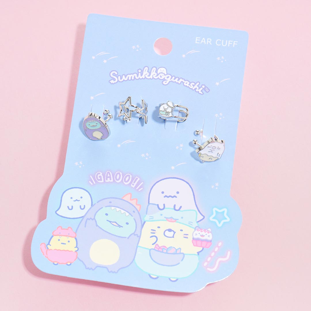 Wear these kawaii ear cuffs with your bestie! The super cute set has die-cut designs featuring Sumikko Gurashi characters like Tokage, Obake, and Neko wearing funny costumes.