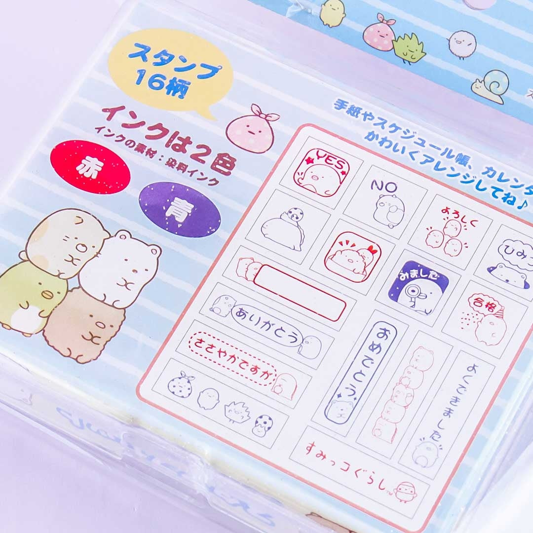 A rubber stamp set featuring Sumikko Gurashi characters in a crane game