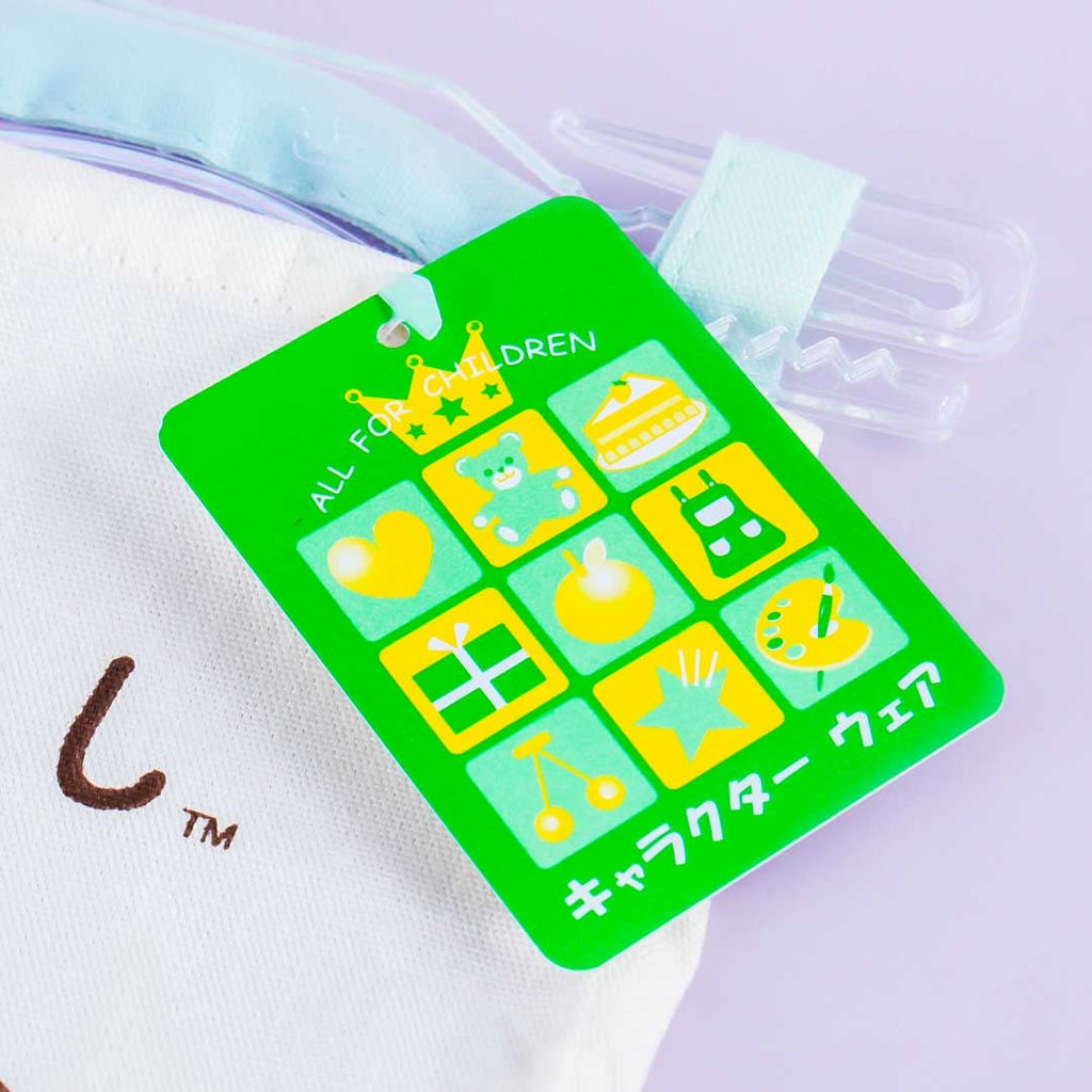 Features two pockets with prints of Sumikko Gurashi characters wearing dinosaur costumes