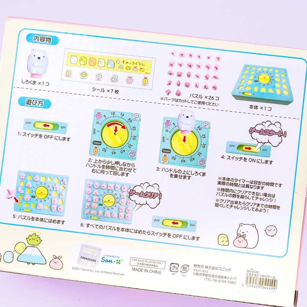 Have fun playing this super cute puzzle game featuring the Sumikko Gurashi with your friends! Finish solving the puzzle within the time limit. When the time limit comes the puzzle pieces including the Shirokuma figure are all going to pop out! You can store all the puzzle pieces in the main board so it's super easy to keep and store away.