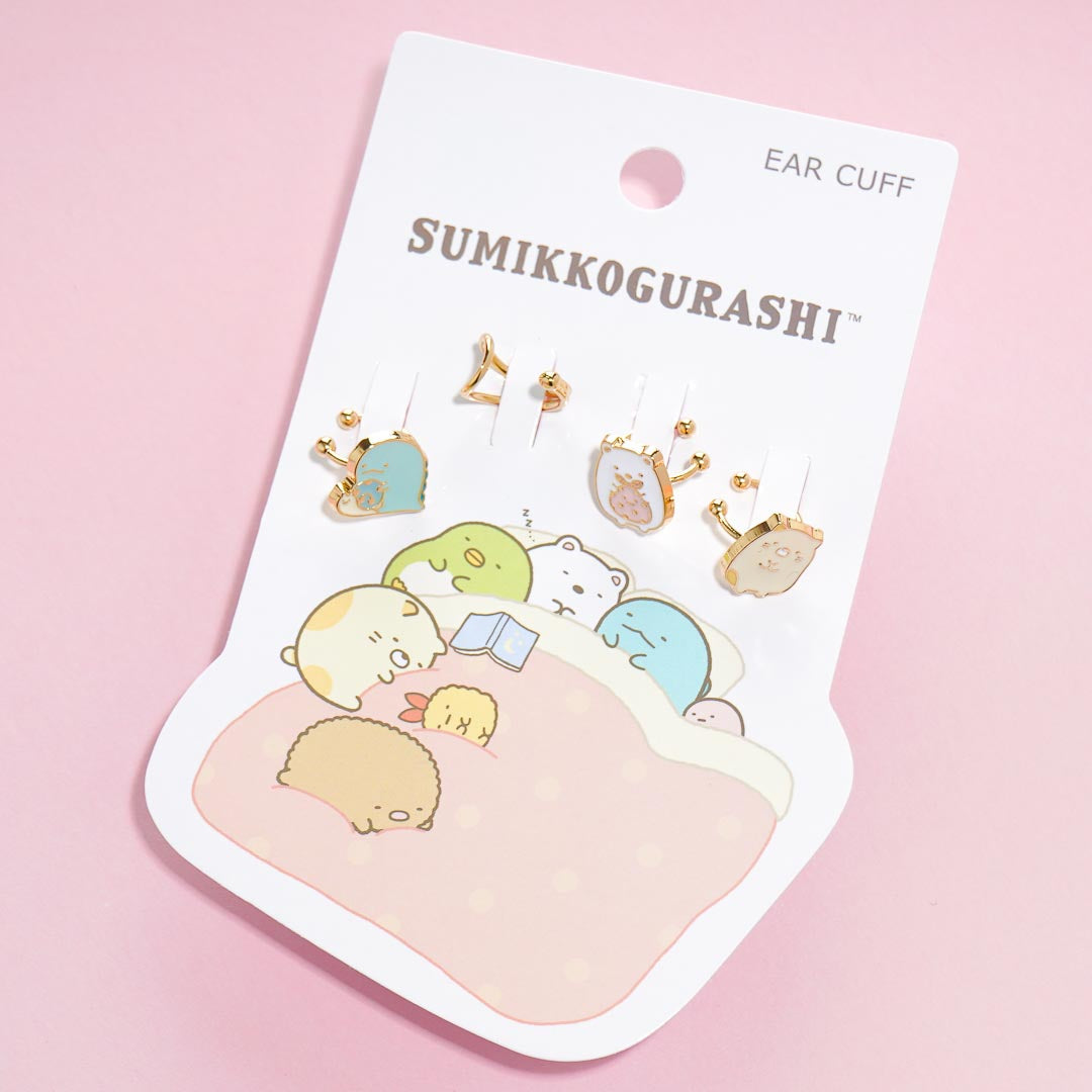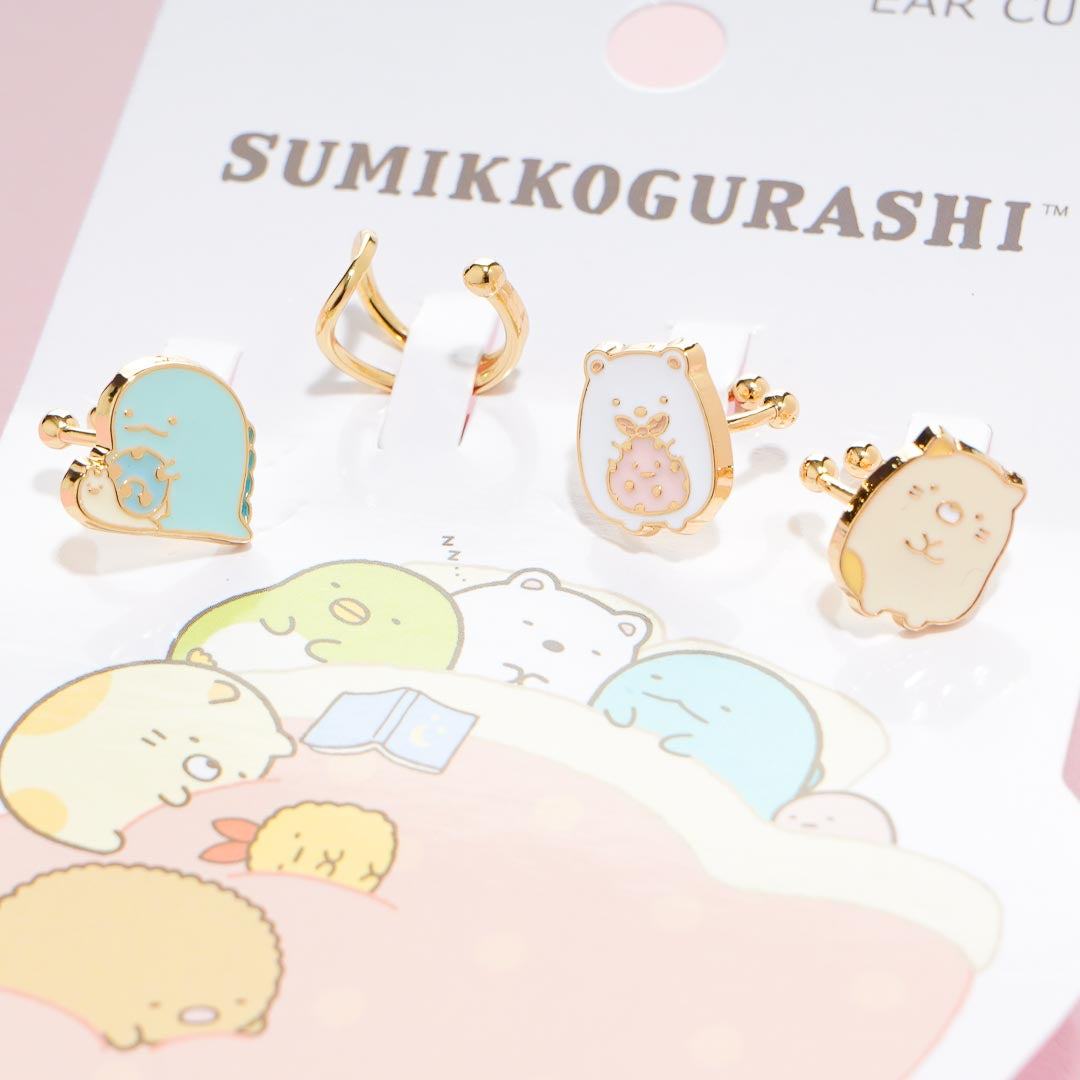 Have fun mixing and matching these cute ear cuffs! This set features kawaii die-cut designs of Sumikko Gurashi characters like Tokage, Nisetsumuri, Shirokuma, Furoshiki, and Neko!