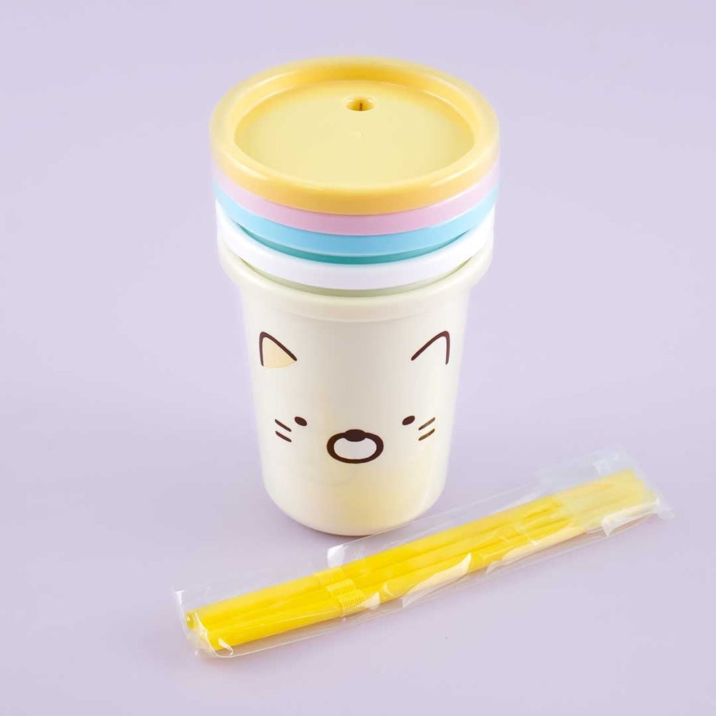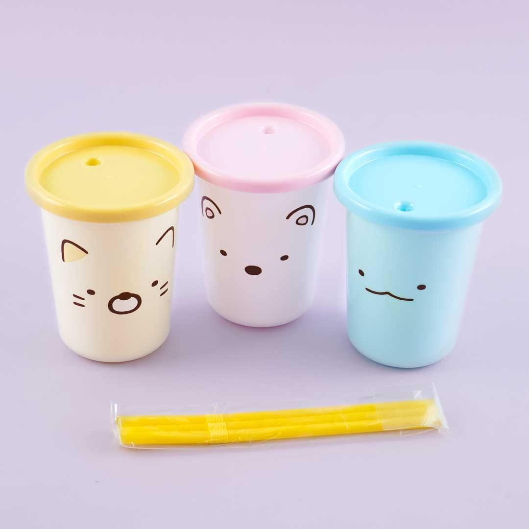 A super kawaii reusable tumbler set illustrated with the Sumikko Gurashi