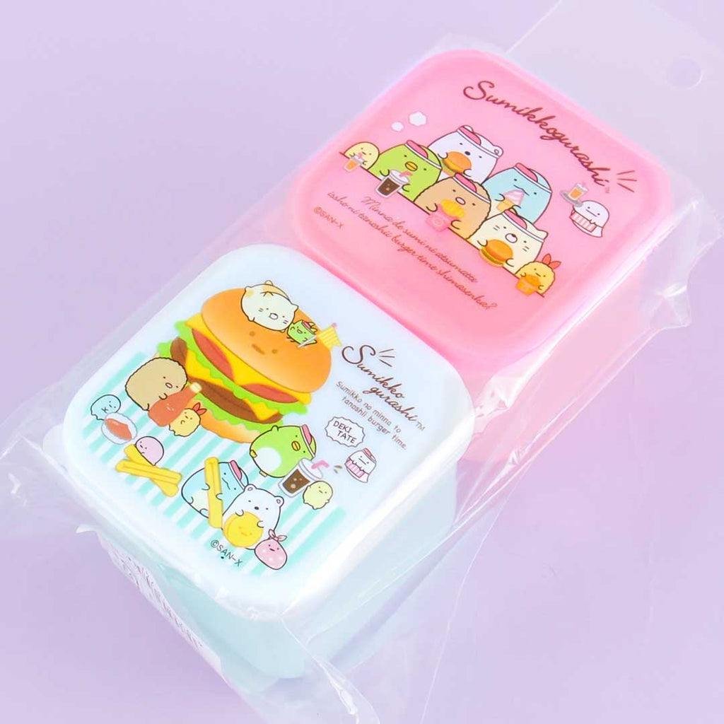 Take your favorite dishes with you using these kawaii duo lunch boxes. This set is decorated with super cute illustrations of Sumikko Gurashi characters and their favorite food like burgers, fries, and more.