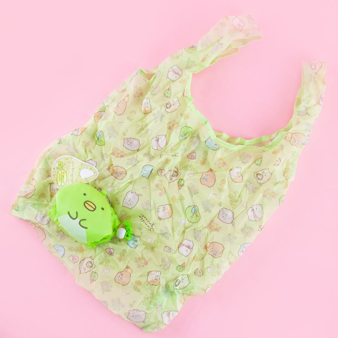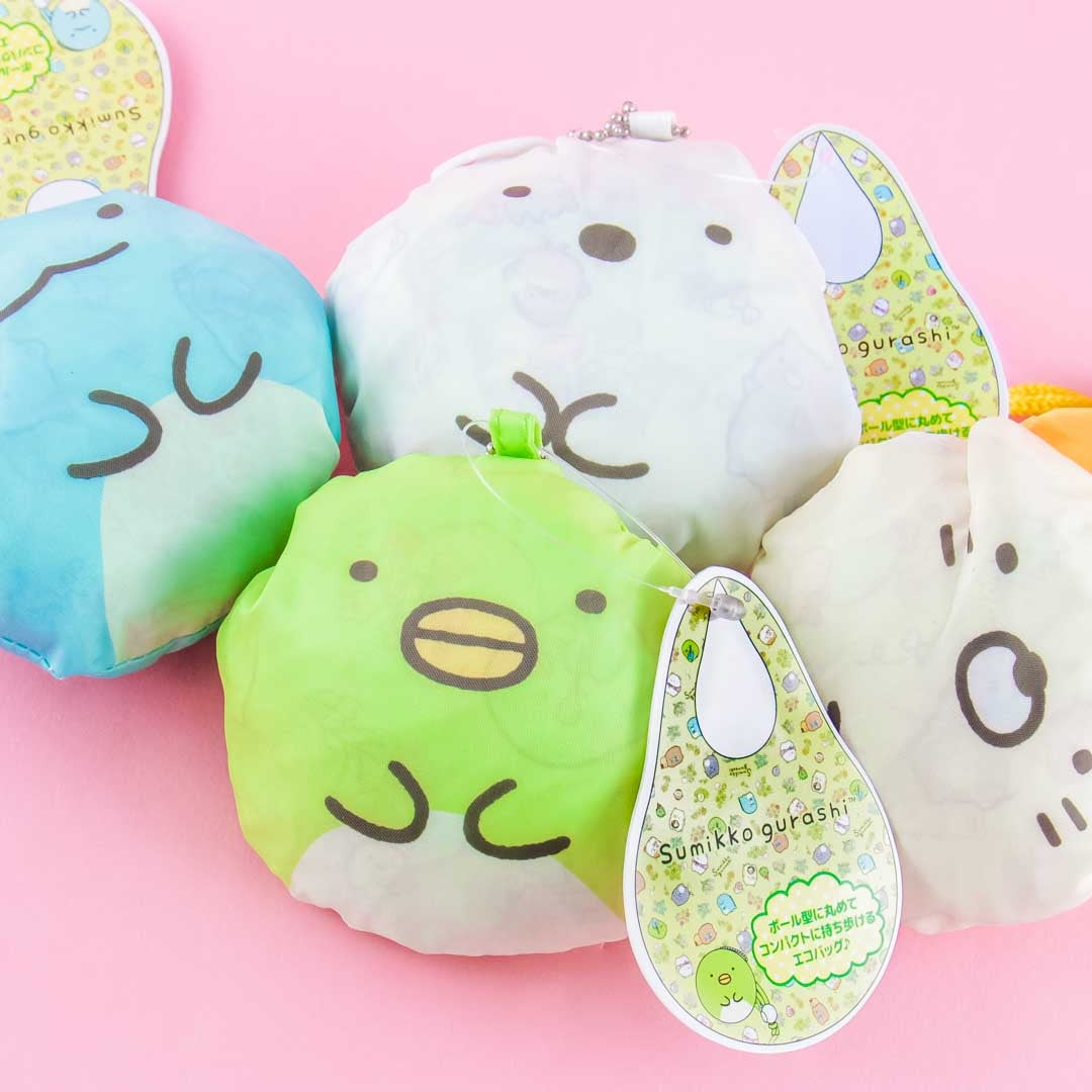 Go shopping for groceries with this super kawaii eco bag featuring prints of the Sumikko Gurashi gang together with flowers! Fold it into a square when you don't need it and pack it inside its carrying case shaped like the head of a member of the Sumikko Gurashi.