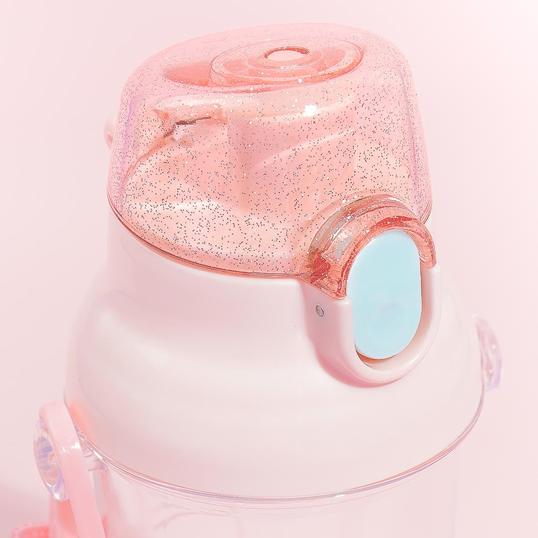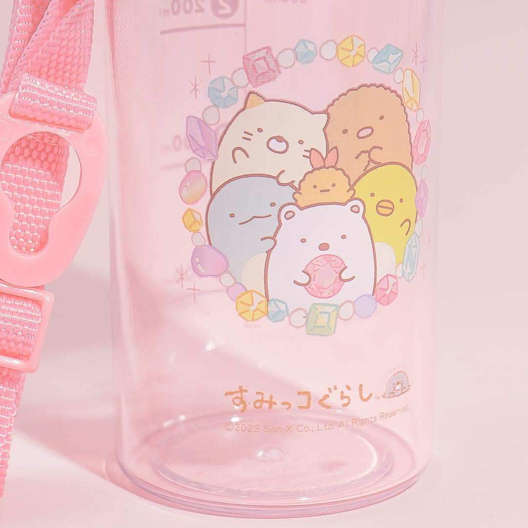 Stay hydrated throughout the day with the help of this cute water bottle decorated with pritns of the Sumikko Gurashi surrounded by flowers! It has markers to help you know how much you've already drank. This transparent water bottle has a push-type lid, a shoulder belt so you can carry it around, and a wide mouth that makes it easy to put ice in.