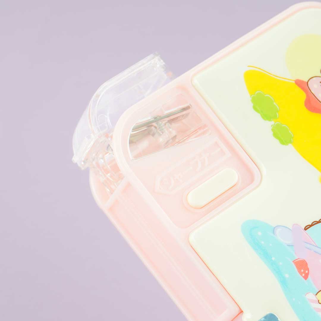 Have fun organizing your favorite school items inside this kawaii case! It’s decorated with prints of the Sumikko Gurashi gang exploring the Food Kingdom! This cute case has two separate compartments on opposite sides, special slots meant to hold pencils and pens, and a pop-out sharpener.