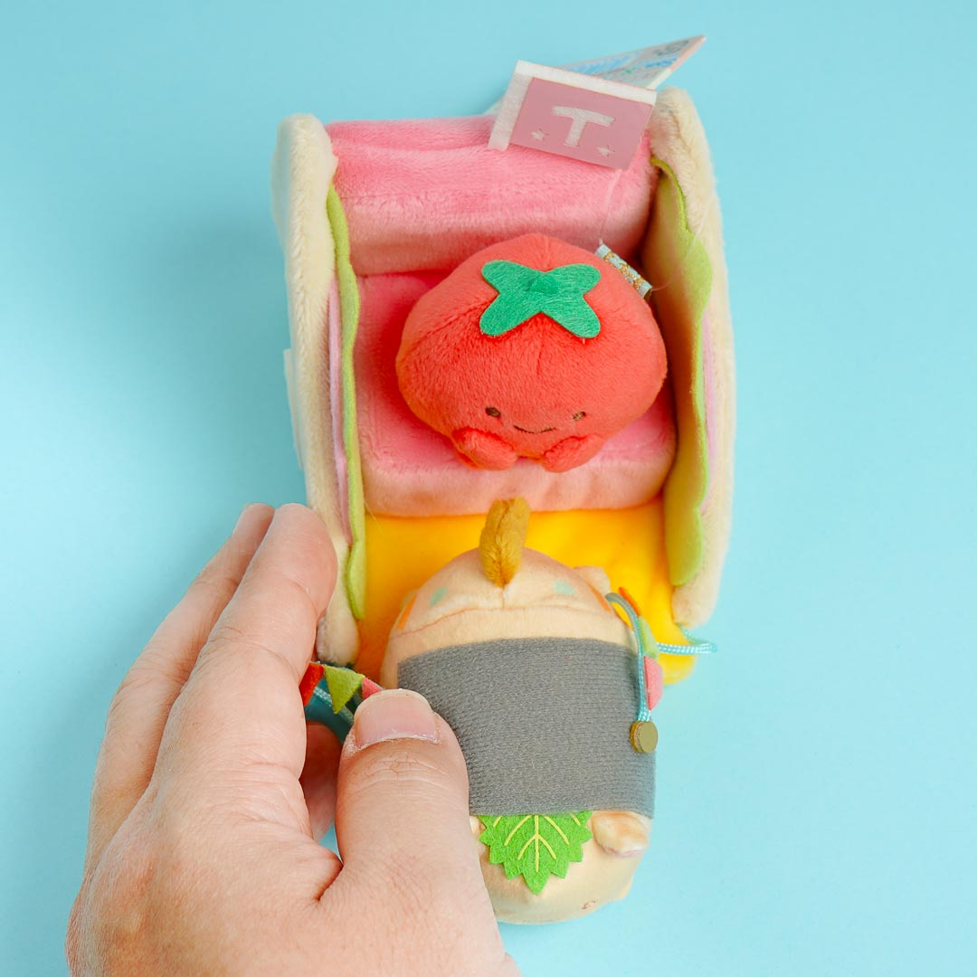 Set includes 1 x mini tomato plushie and 1 x sandwich carriage with rice pony