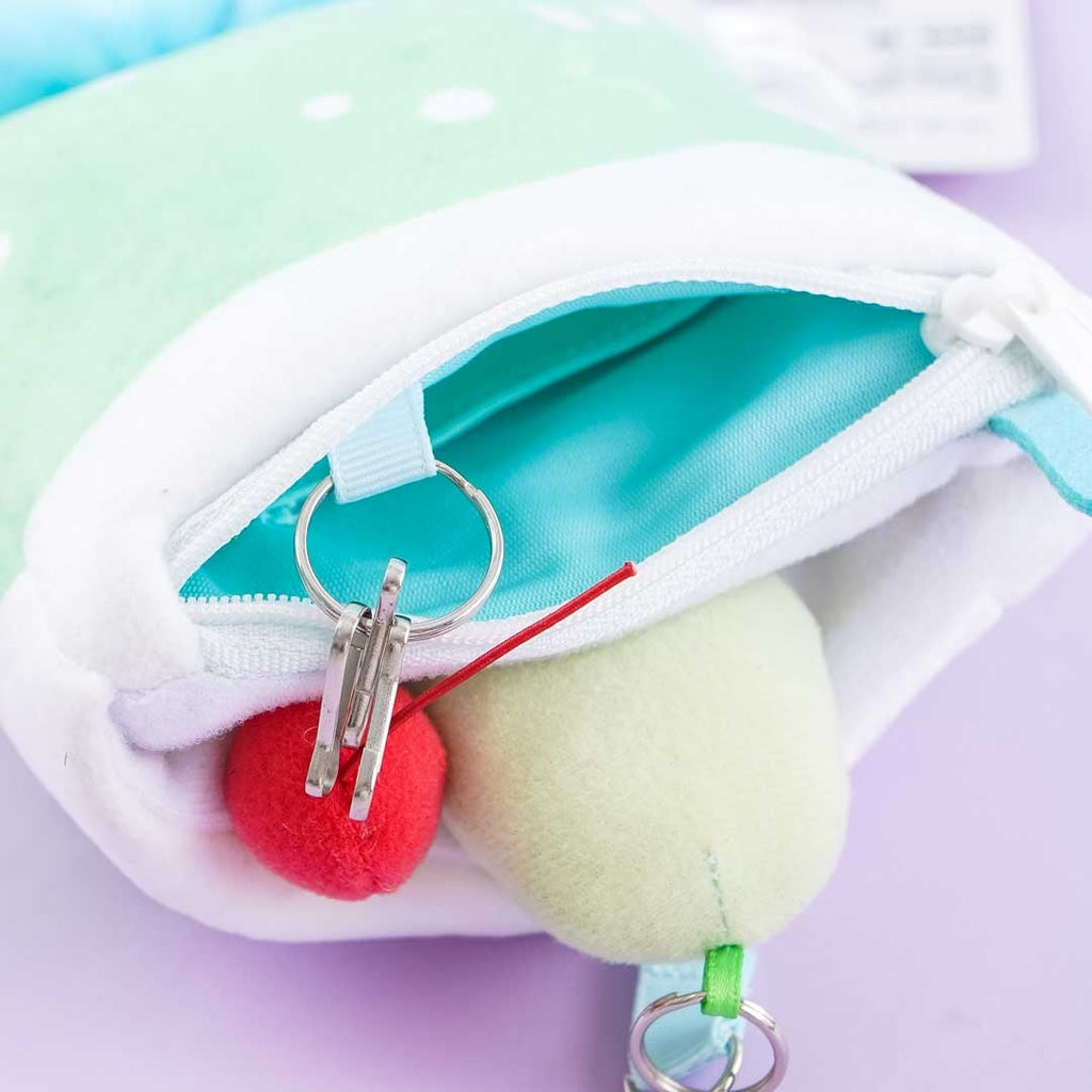 A super kawaii zippered pass case with a Penguin? plushie decor from the Sumikko Gurashi