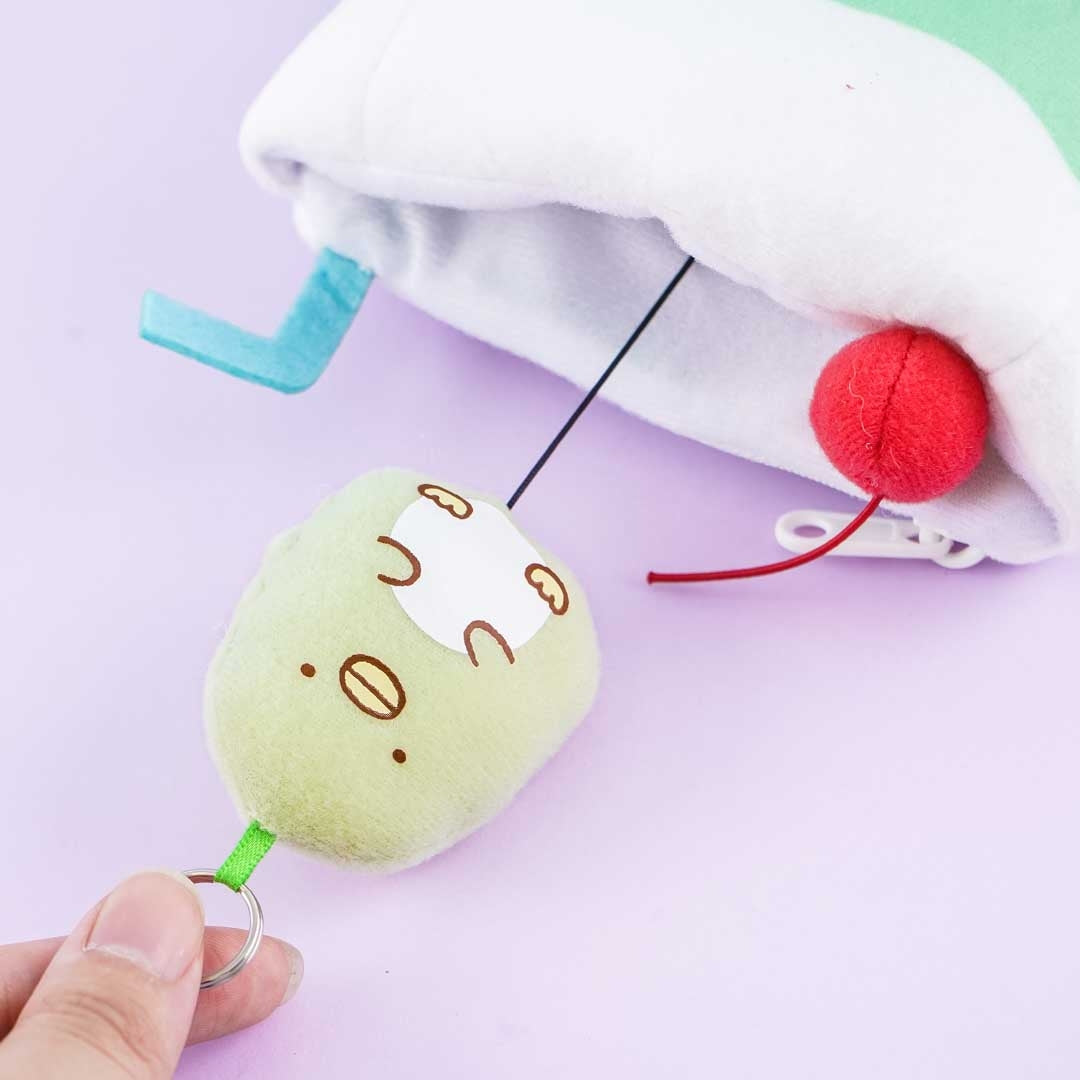 Don't forget your important cards by keeping them in the inner pocket of this cute zippered pass case. It has a Penguin? plushie decor from the Sumikko Gurashi attached to a reel. Extend the reel to watch the decor pop out!