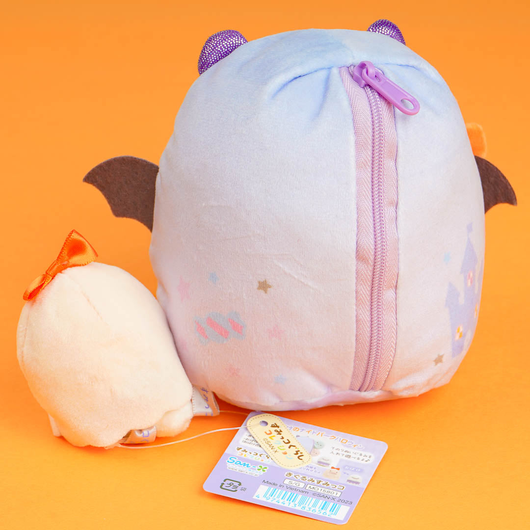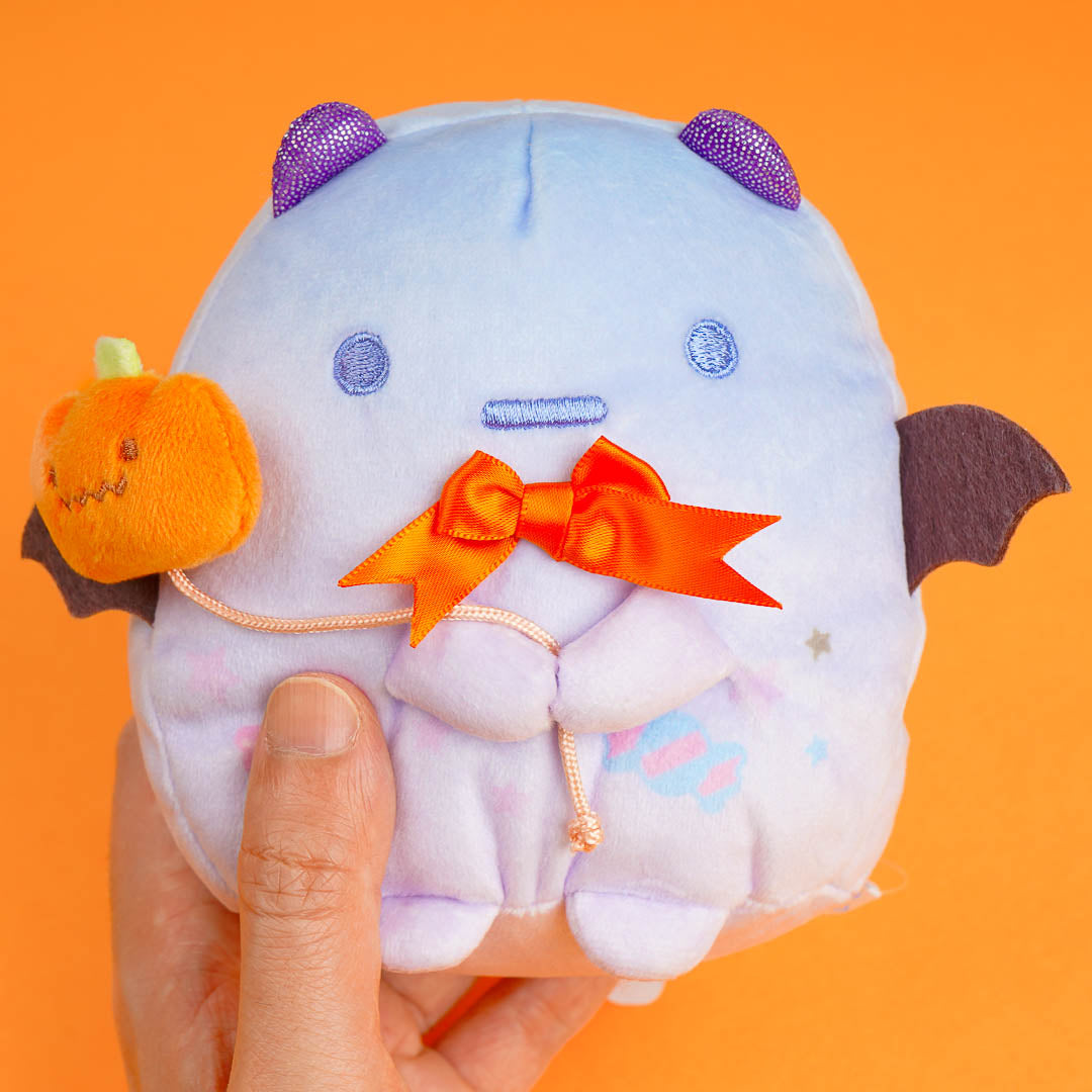 Make your Halloween decor extra cuter with this cute set of Sumikko Gurashi plushies! The medium-sized plushie is wearing a cute bat costume and has a pocket at the back for your small goodies! The mini plushie can be dressed up as a ghost.