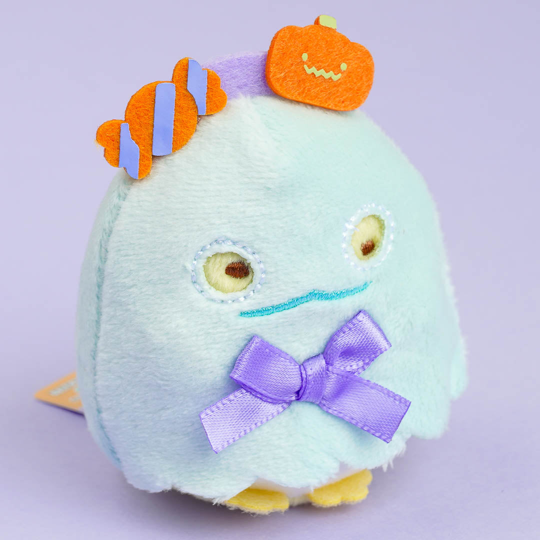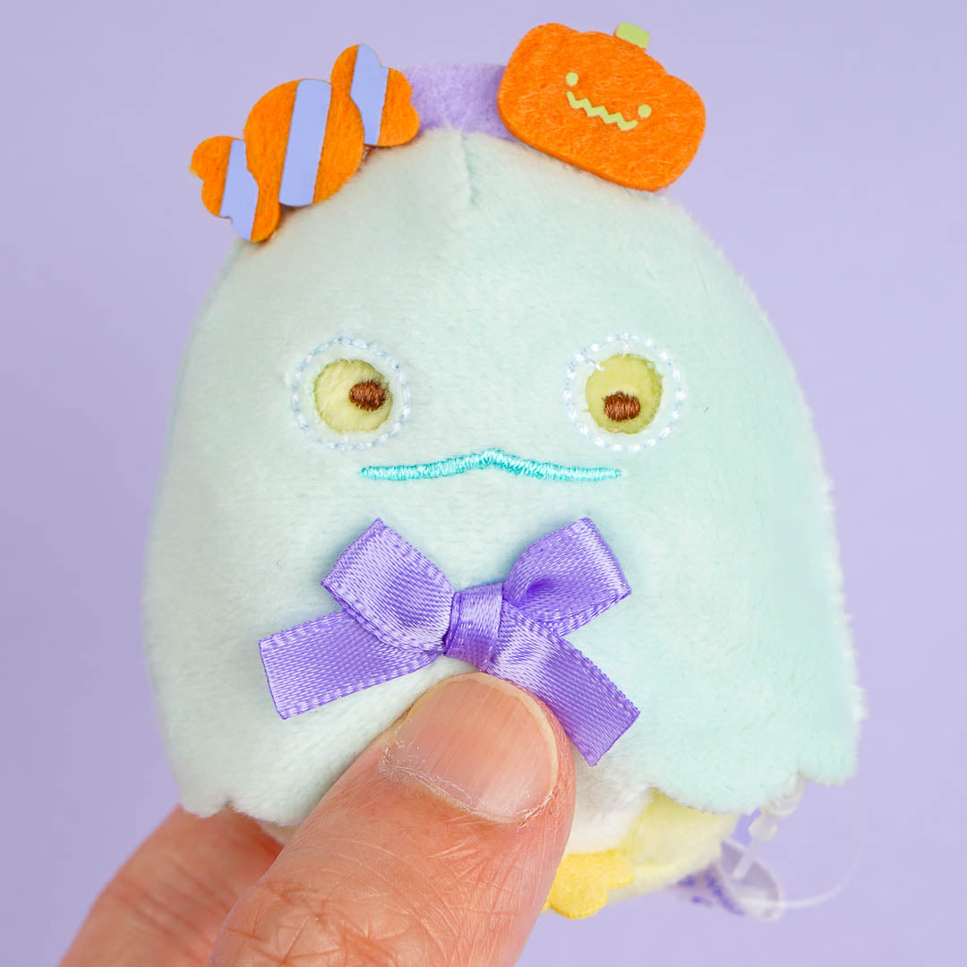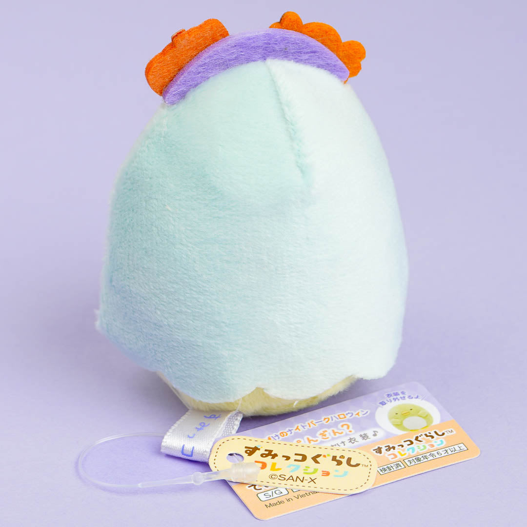 Penguin? from Sumikko Gurashi is ready for Halloween with its ghost costume that resembles Tokage! Have fun playing with this mini plushie that comes with a removable ghost costume.