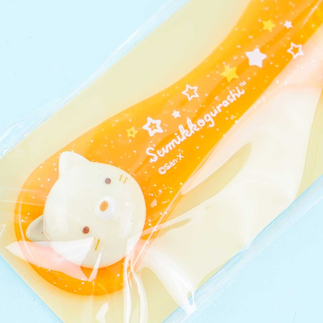 Keep your hair looking neat with this super cute glittery comb! It has prints of Neko from Sumikko Gurashi and lots of stars. This mini-sized plastic comb also has a Neko head charm attached to its handle.