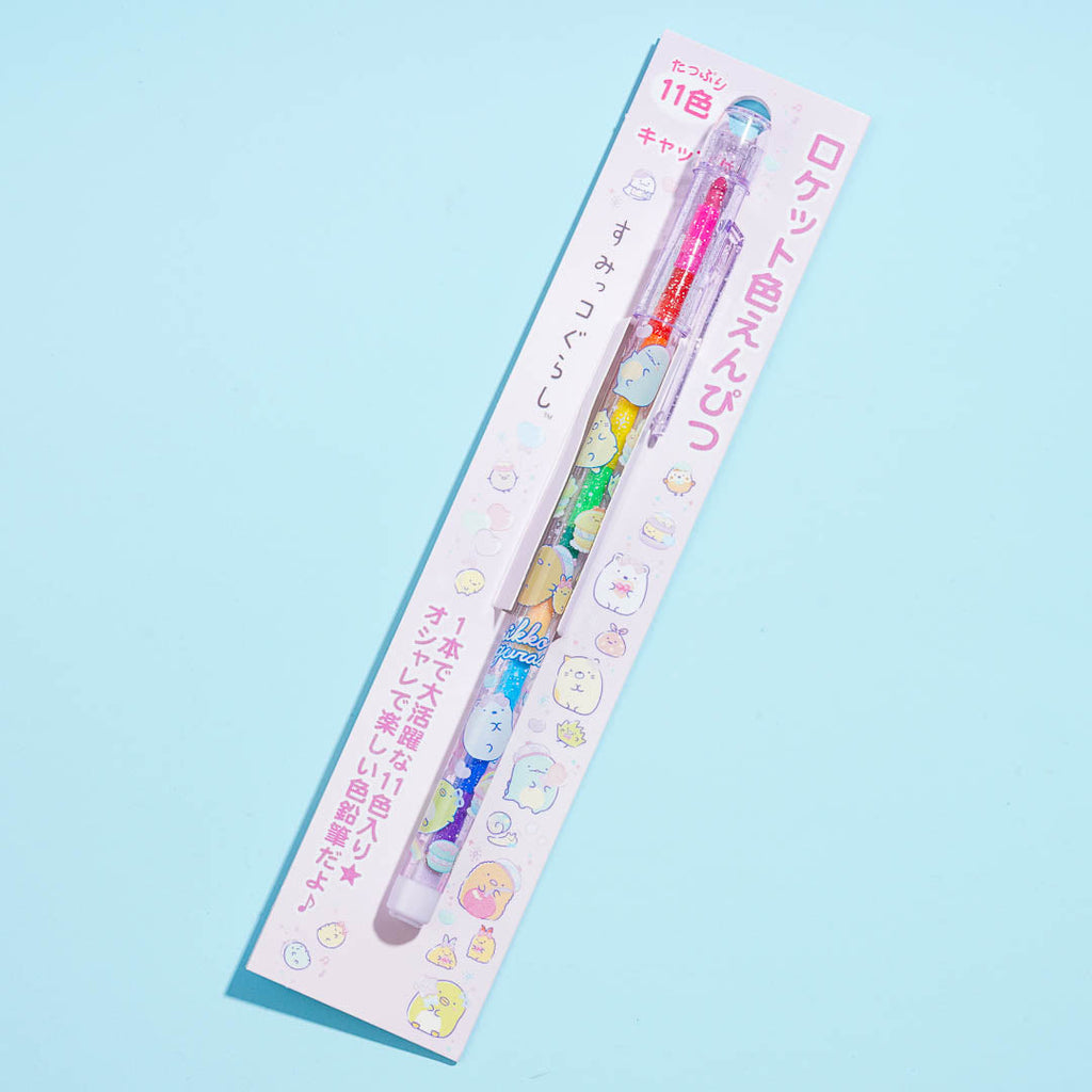 Have fun drawing and coloring with this super kawaii rocket colored pencil. This glittery stacking point pencil features prints of the Sumikko Gurashi playing around! Don't forget to place it in your pencil case.