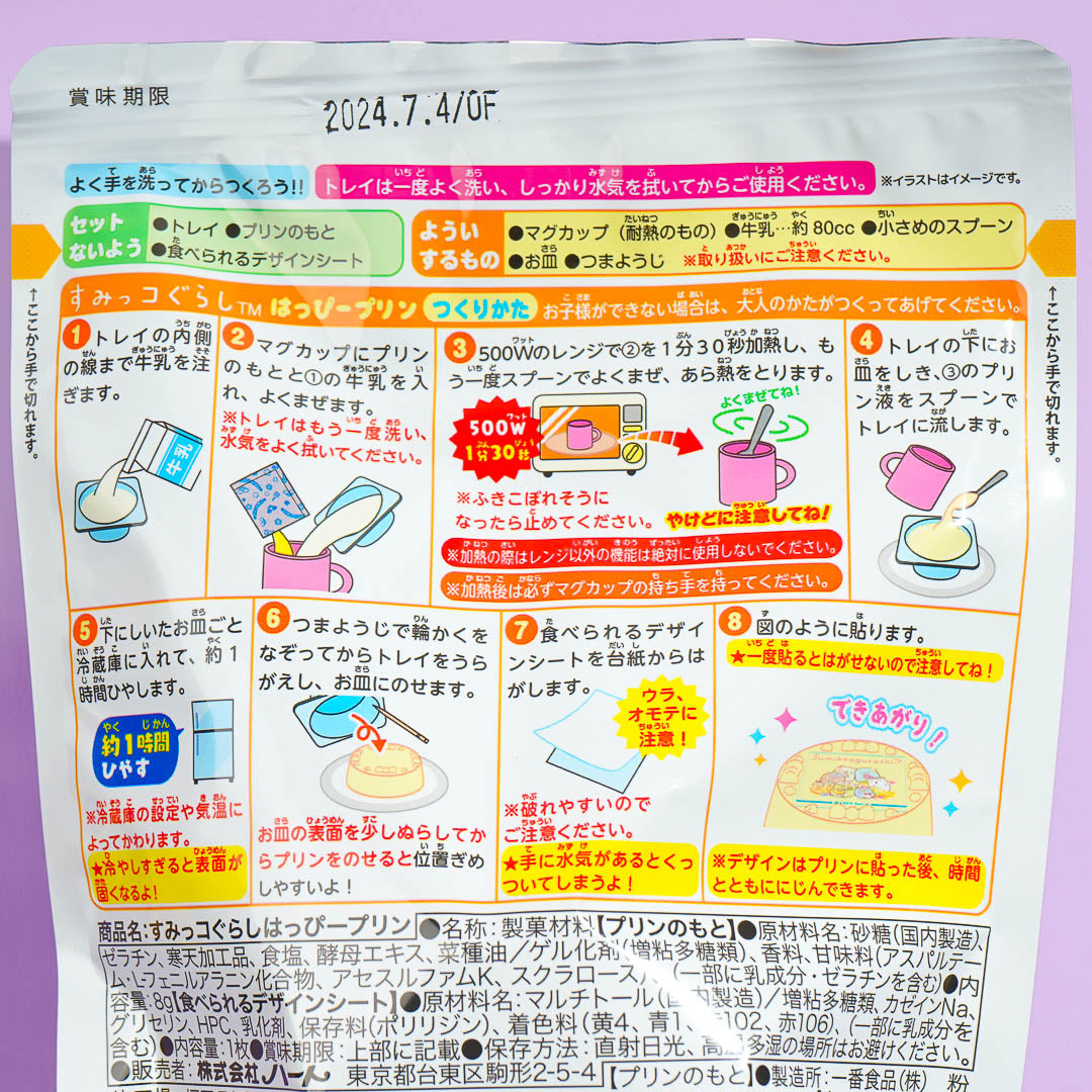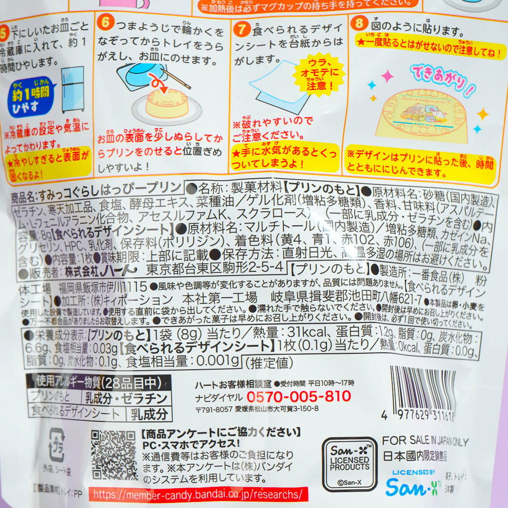 Make your own Sumikko Gurashi with this DIY kit! All you have to do is follow the instructions at the back of the pack to make the pudding. Add a dose of cuteness by placing the edible Sumikko Gurashi sticker on top of the pudding. You'll get a random edible sticker from a set of 10 designs.