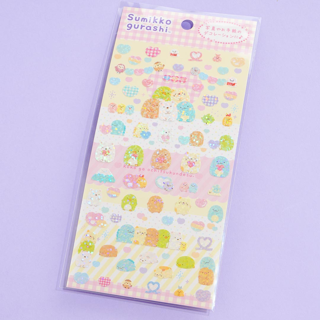 Show some love with this sticker sheet! It's filled with Sumikko Gurashi characters and assorted heart prints! These stickers will definitely make your stuff extra cuter.