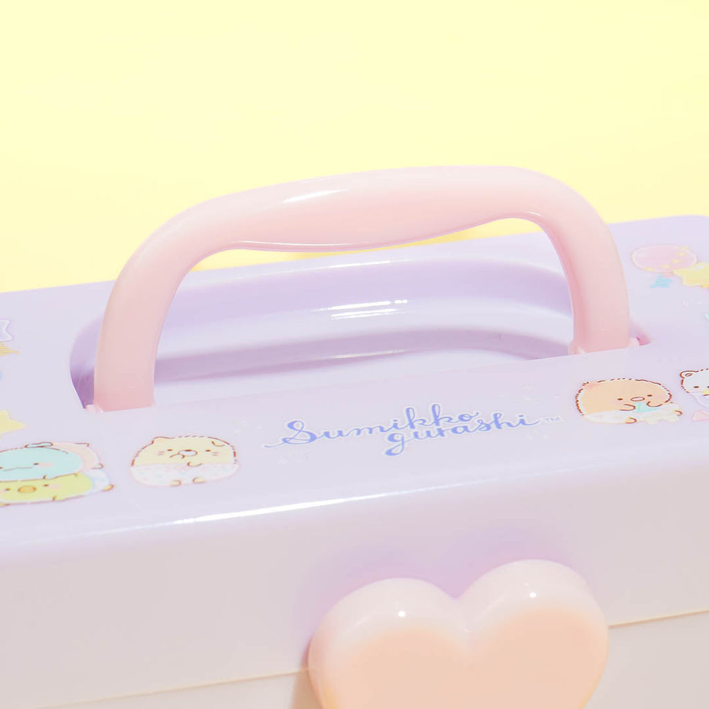 Keep your makeup, trinkets, and other things inside this super kawaii storage box. This handy case features prints of the Sumikko Gurashi as babies! It has a heart-shaped lock, a nifty handle, and a removable tray inside.