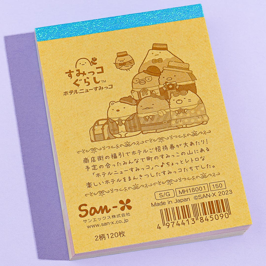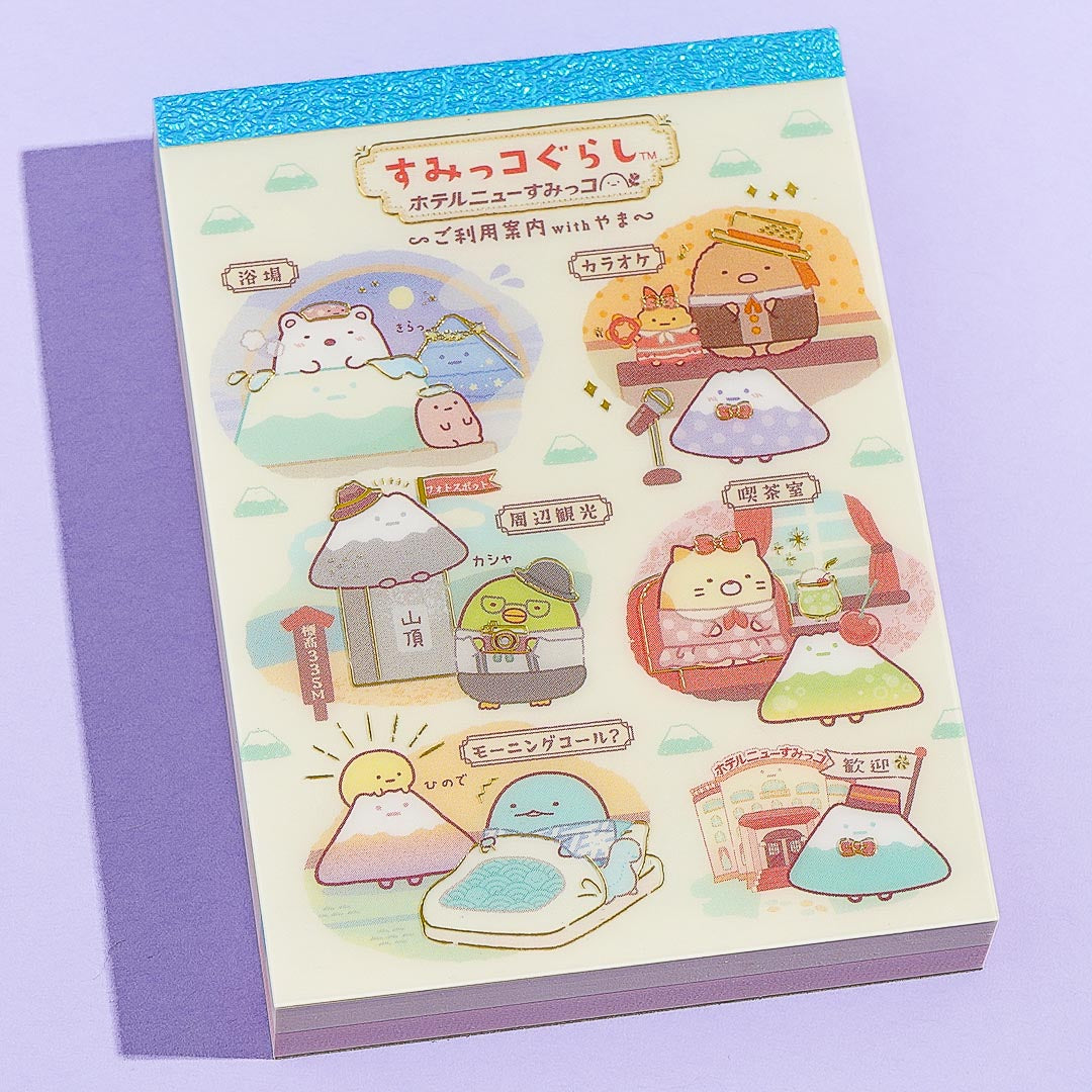 Write down important reminders using this kawaii mini notepad! It features cute illustrations of Sumikko Gurashi Hotel with Yama as the tour guide. It has lined pages and a plastic cover with foil stamping!