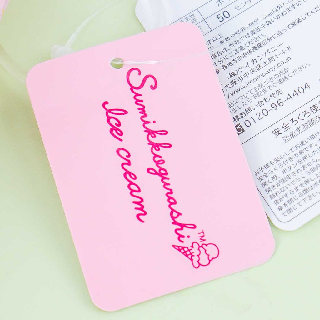 A collapsible umbrella featuring the Sumikko Gurashi characters, ice cream, and polka dots