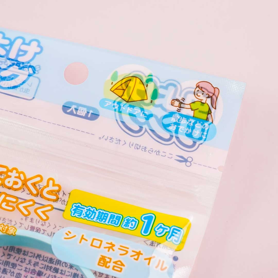 Wear this cute band around your wrist to repel biting insects! It features the characters from Sumikko Gurashi and comes in resealable packaging. It is microencapsulated with citronella oil with a refreshing scent that can last up to a month.