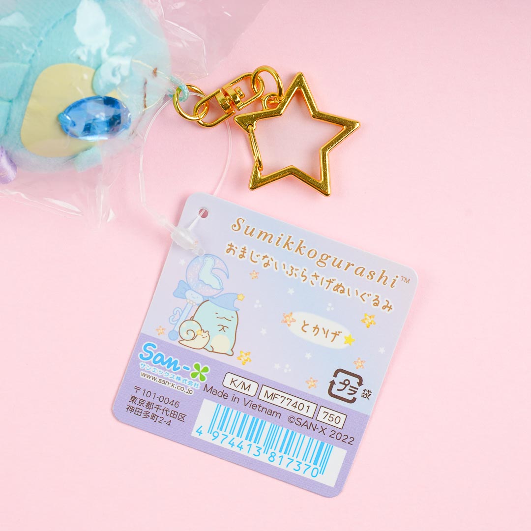 Spread kawaii vibes with this cute Tokage plush charm! The kawaii Sumikko Gurashi pretend lizard is holding a shiny charm stone. Attach it to your bag using the star-shaped clasp.