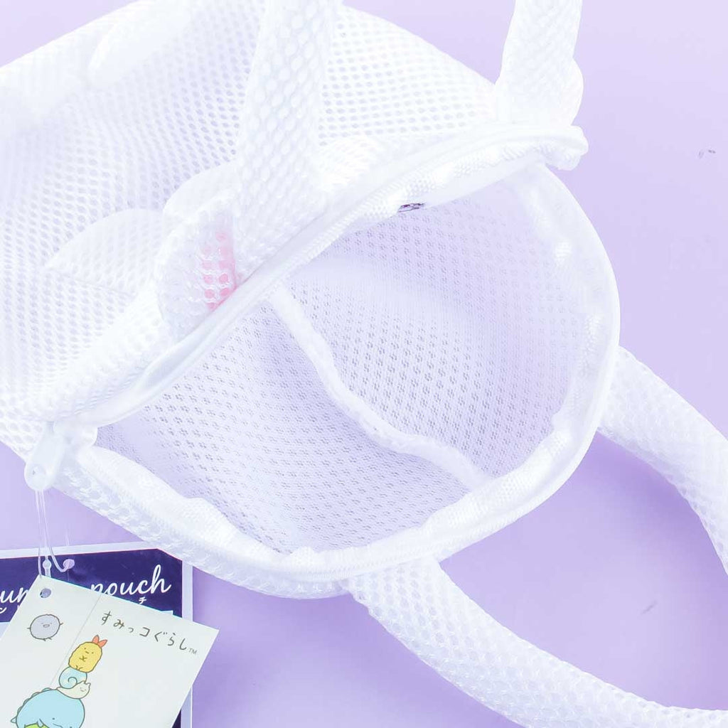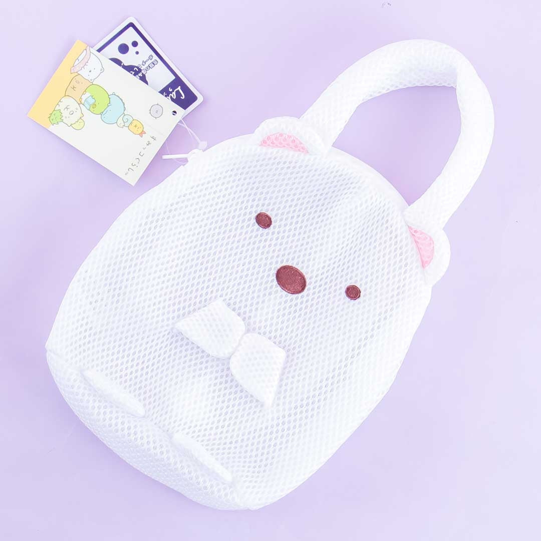 Use this super kawaii laundry tote bag to carry clothes after an afternoon at the laundromat or a fun day at the beach! This zippered mesh bag is shaped like Shirokuma from the Sumikko Gurashi gang.