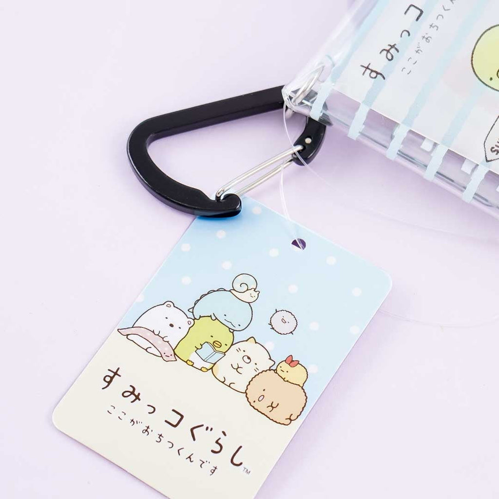 Keep your things organized inside this cute clear pouch. It's illustrated with the Sumikko Gurashi forming a line with each other! This pouch has a button closure and a metal carabiner so you can attach it to anything you'd like!