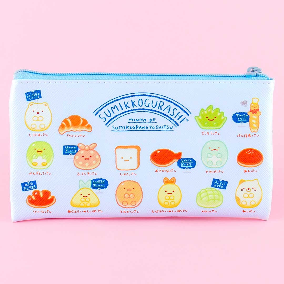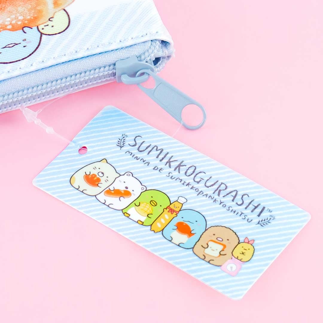 A soft pencil case featuring Sumikko Gurashi characters and bread products